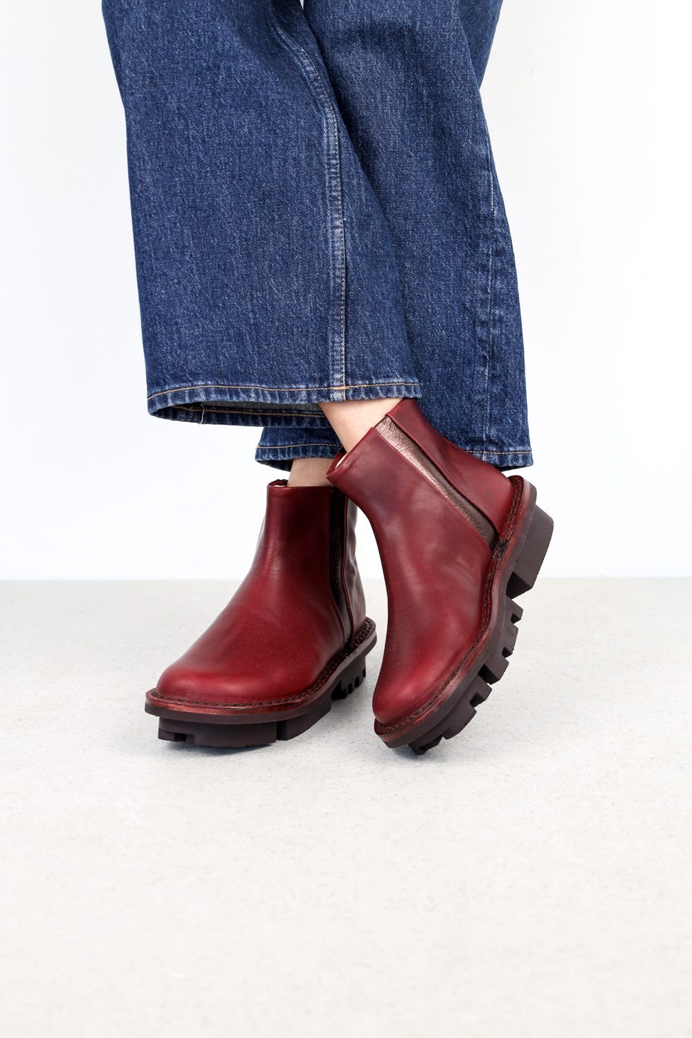 The vertical side inserts, crafted from a contrasting, shinier leather, create a subtle interplay of textures - a quiet yet elegant detail.