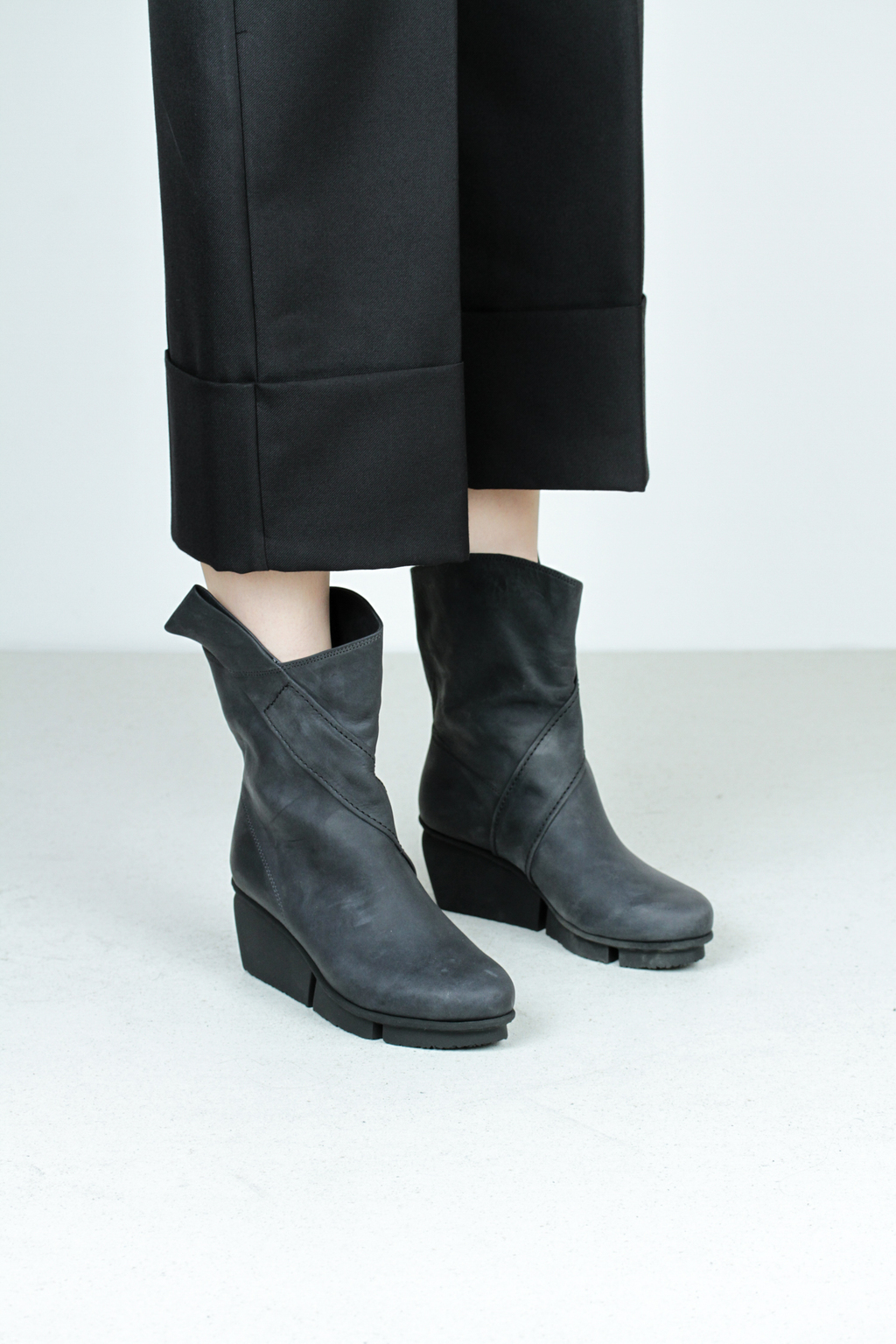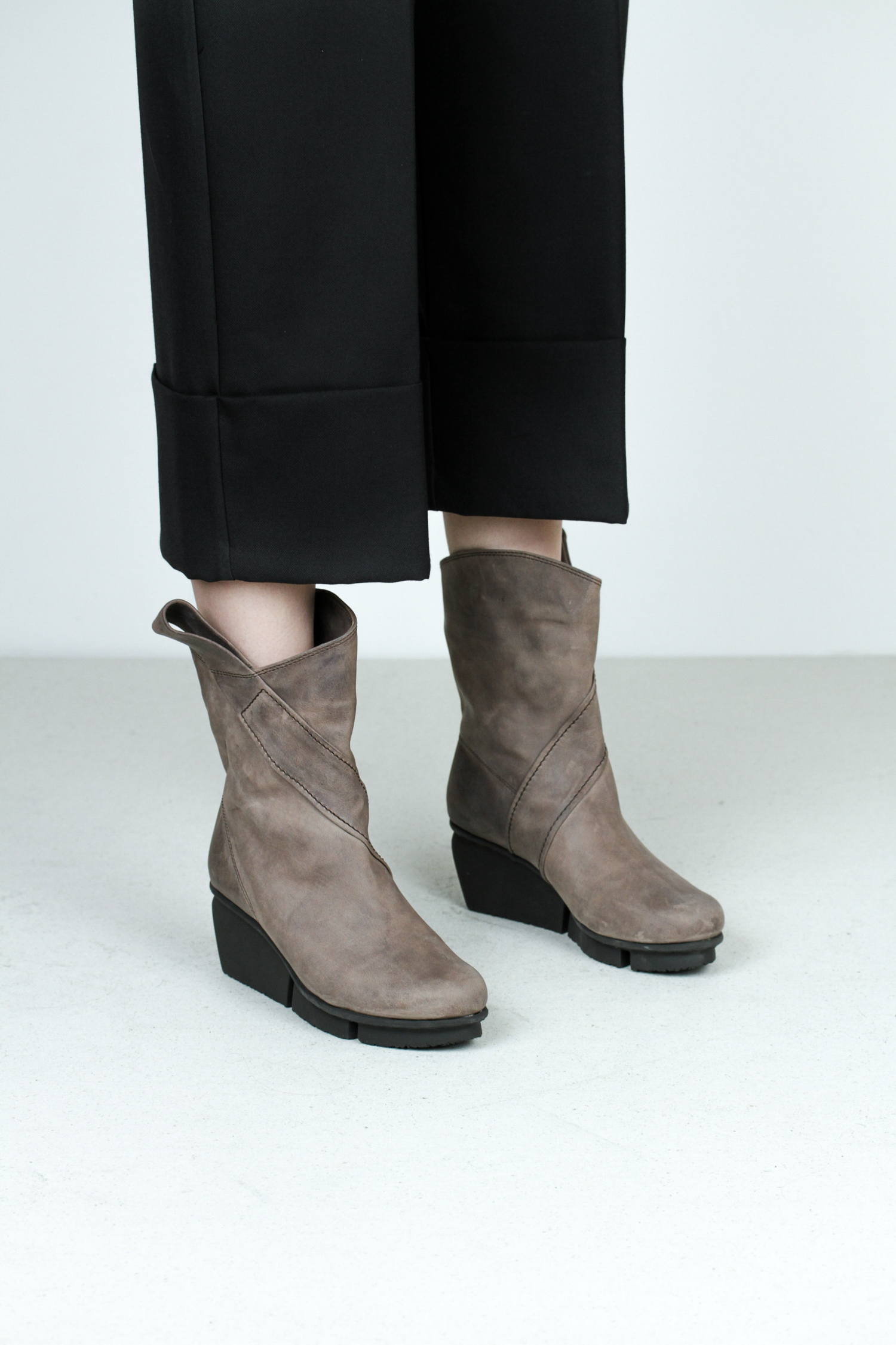 Slip-on ankle boot developed as a modern adaptation of a cowboy boot. The wide strap on the side adds to the boot’s casual character and makes it easier to put on.
