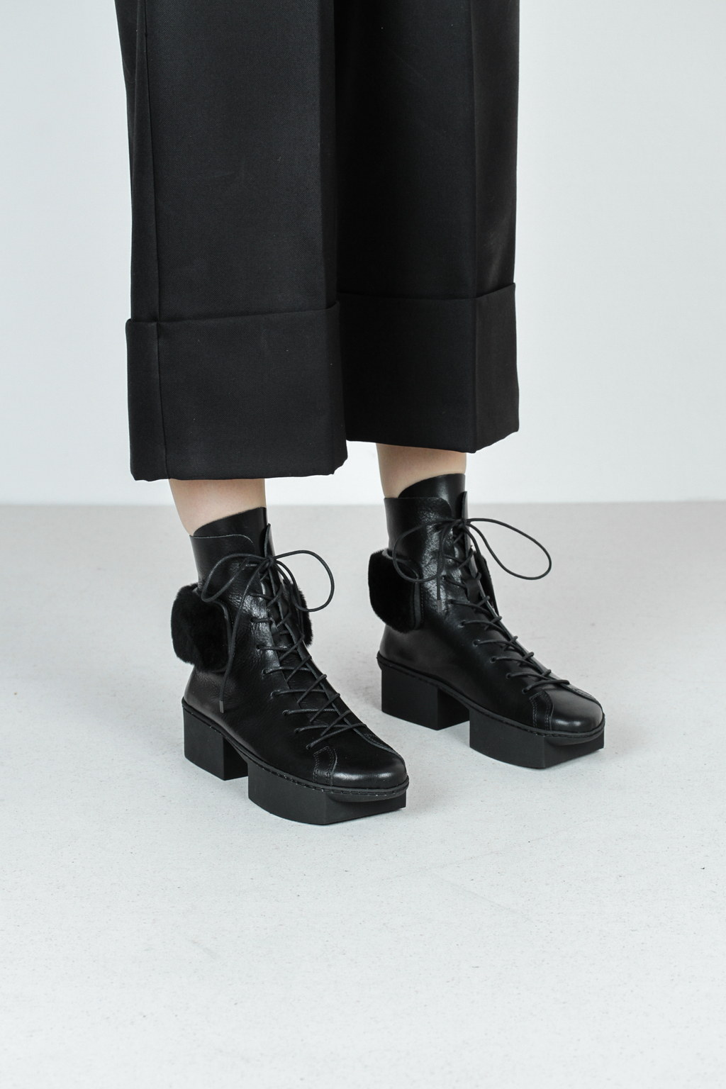 Unisex lace-up ankle boot, with a padded trim running around the back of the ankle.
