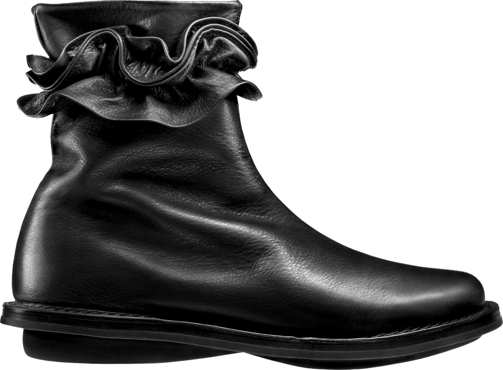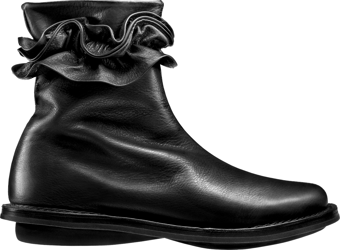 Elegant bootie with a decorative belt of frills around the shackle and zip fastener on the inside.