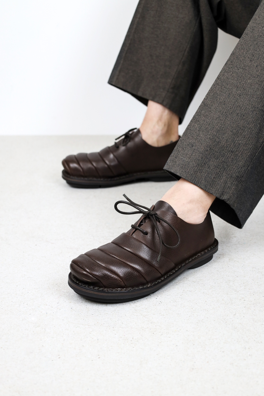 Die feingearbeitete, fliessende Überzeichnung der Kappenpartie gibt diesem Unisex-Schnürschuh eine besondere Silhouette.