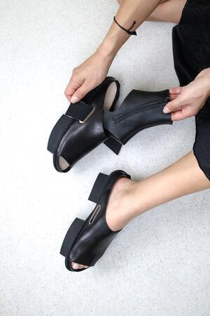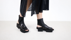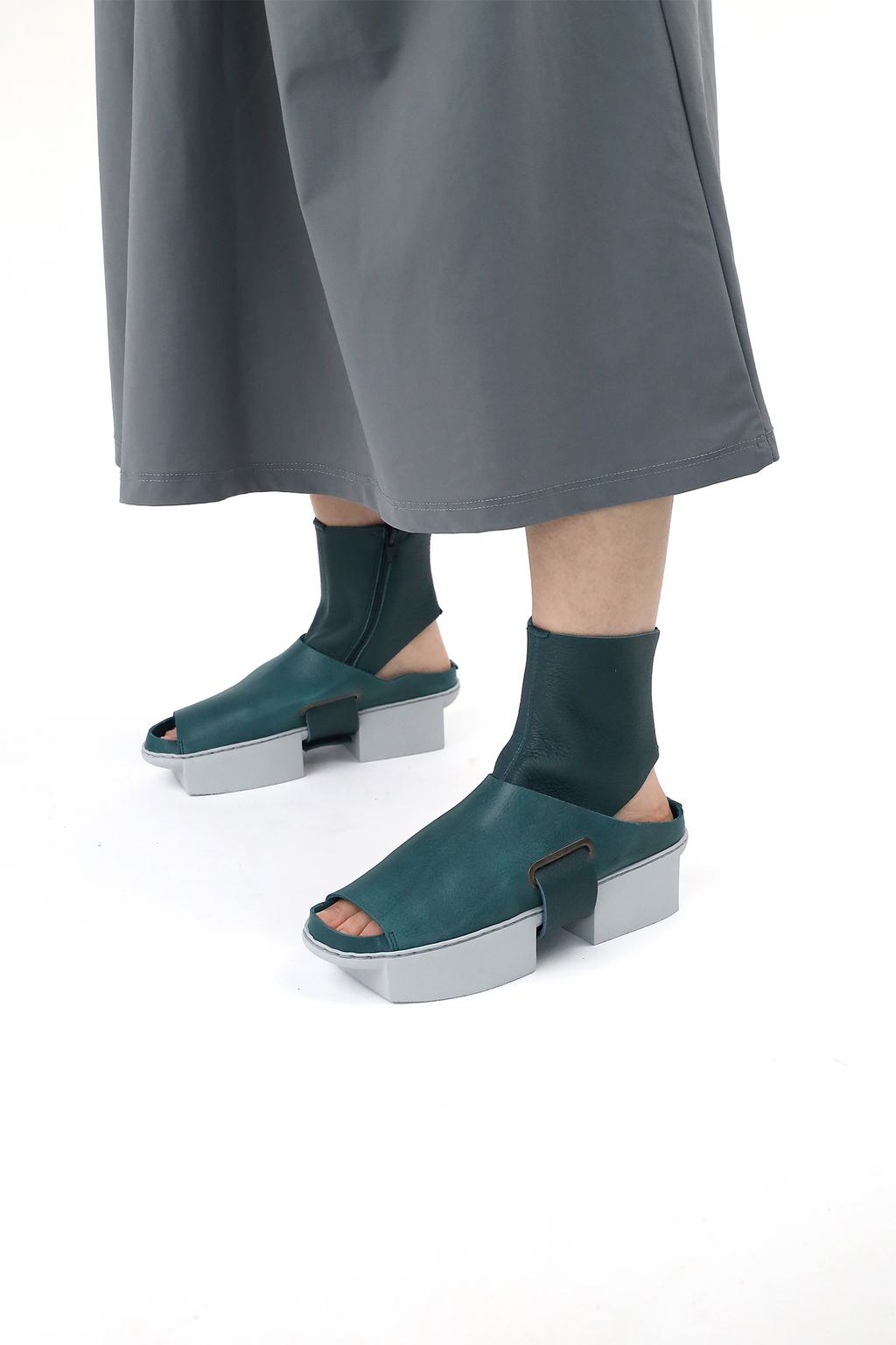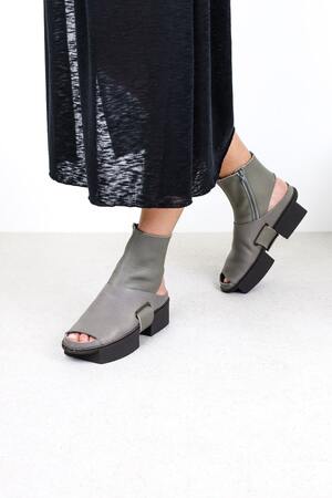 This open clog made of sturdy leather is paired with a removable soft leather sock and can be worn with or without the sock.