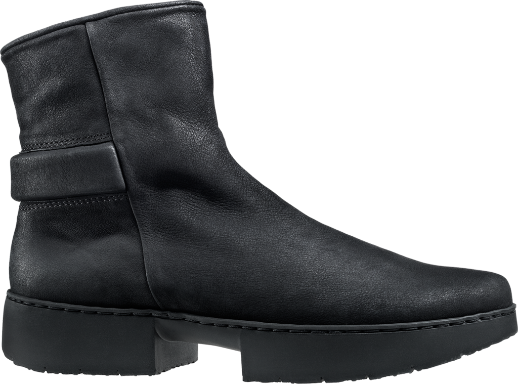 Unisex ankle boot with inner zip fastener. The square, padded detail at the heel refers to its maritime influences.
