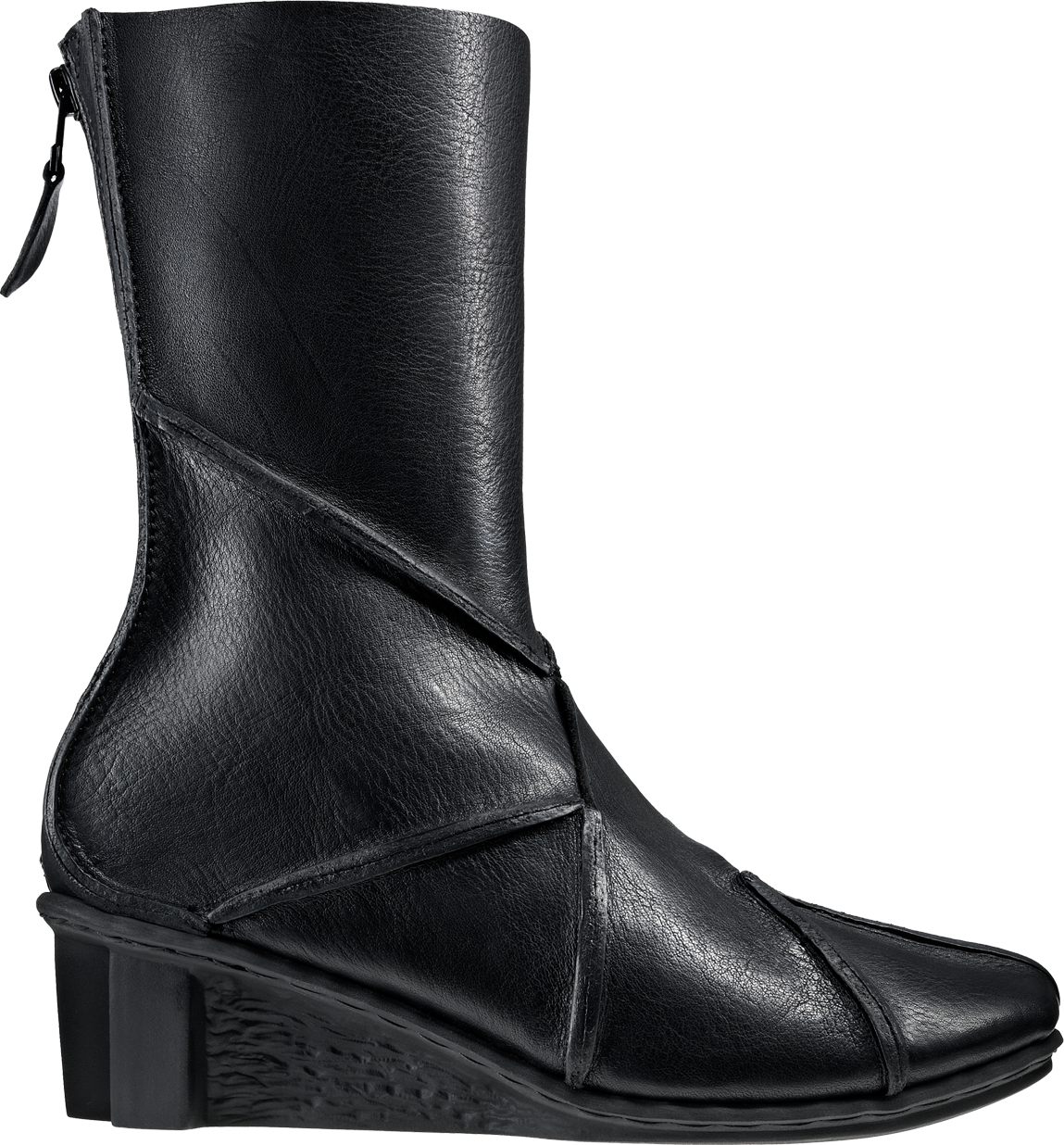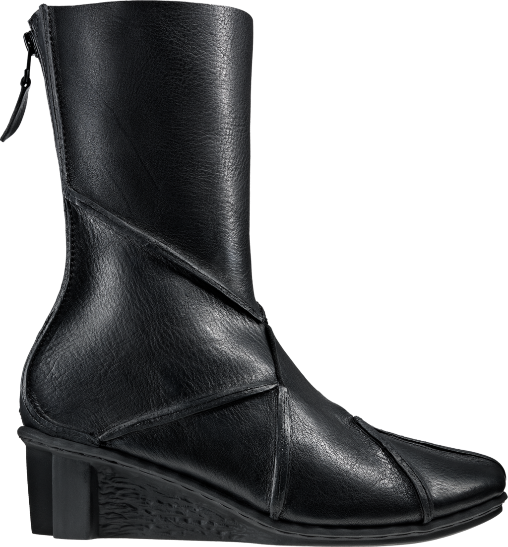 Boot variant of "Tender" with zip at the heel and equally decorative raw seams.
