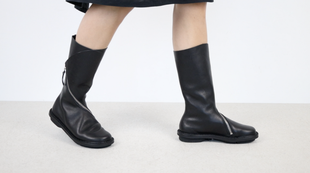 Unlined unisex version of »Onion« with the same, diagonally across the instep running zipper.