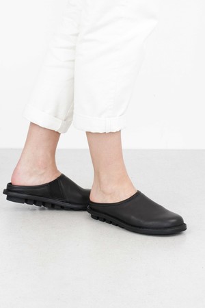 Alternative version of the ultimate Trippen classic »Yen«, crafted from soft leather with an open heel section, ideal for simply slipping on.