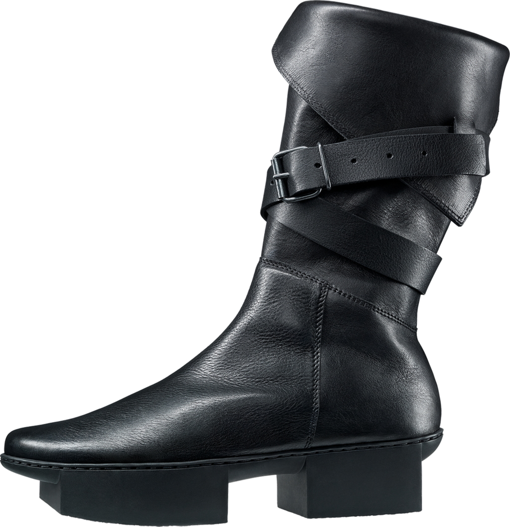 Knee-high boot that can be worn with its full height showing or with the shaft folded down. The picture shows the style in »black-waw«.