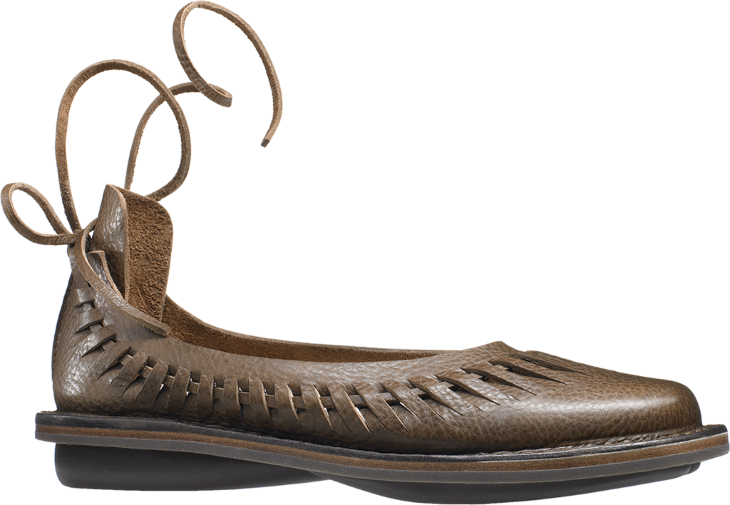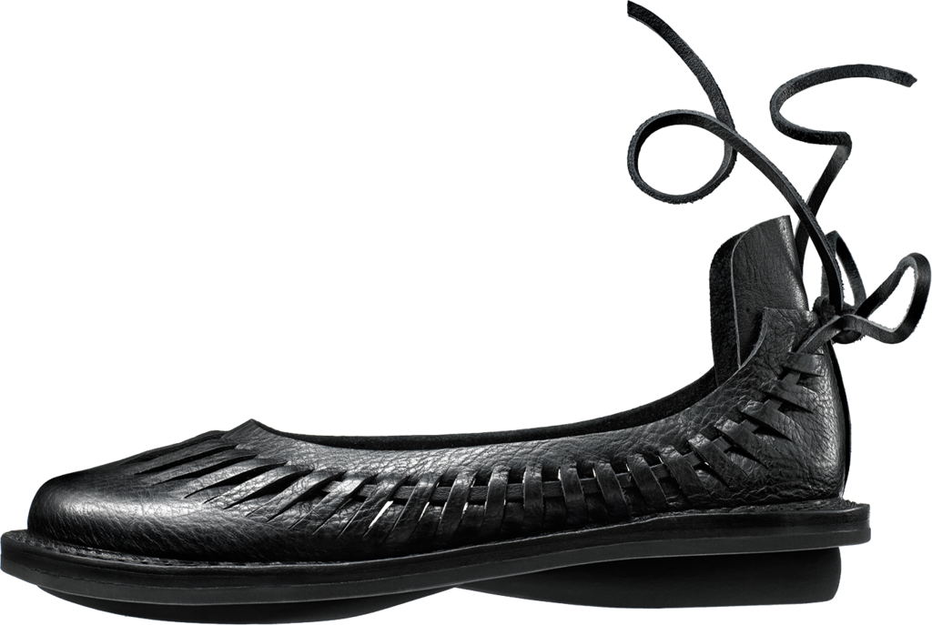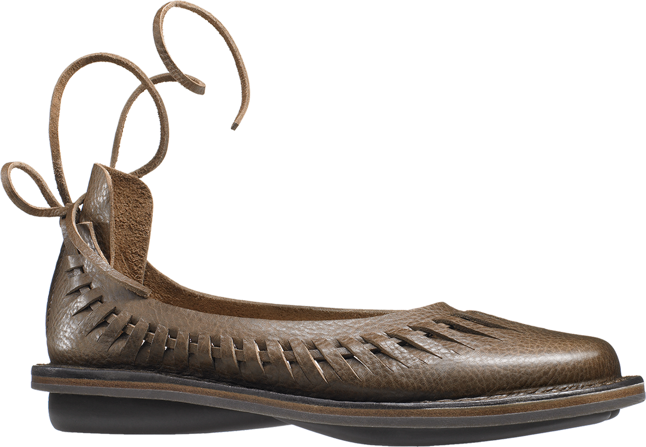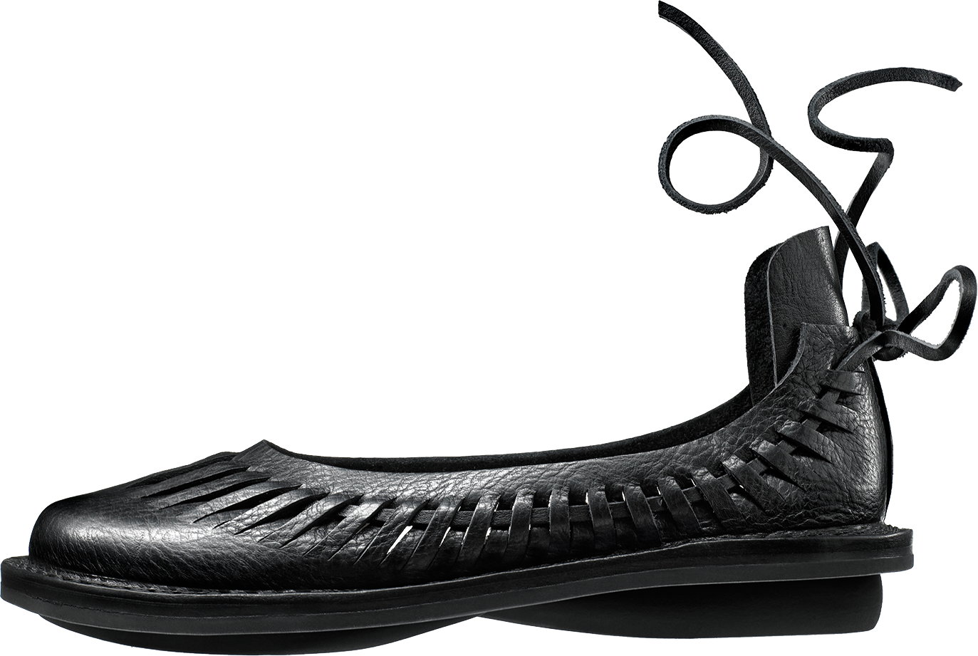 The narrow leather strap can be tied around the ankle. It accentuates the border’s handicraft appeal and also prevents the upper from gaping.
