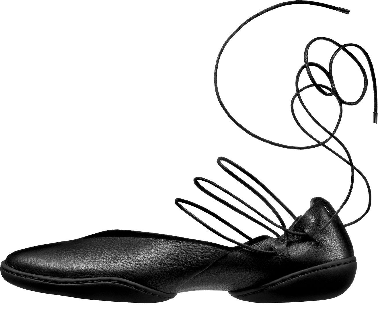 Low cut ballerina where the laces are draped decoratively around the ankle.