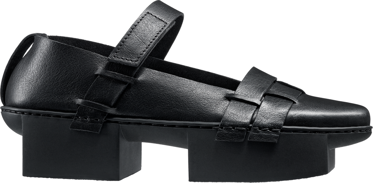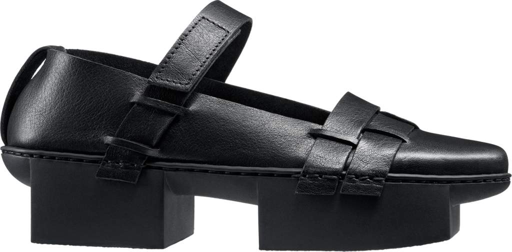 Experimental Velcro strap shoe. The shaft is divided up by interwoven straps attached to the sole seam.