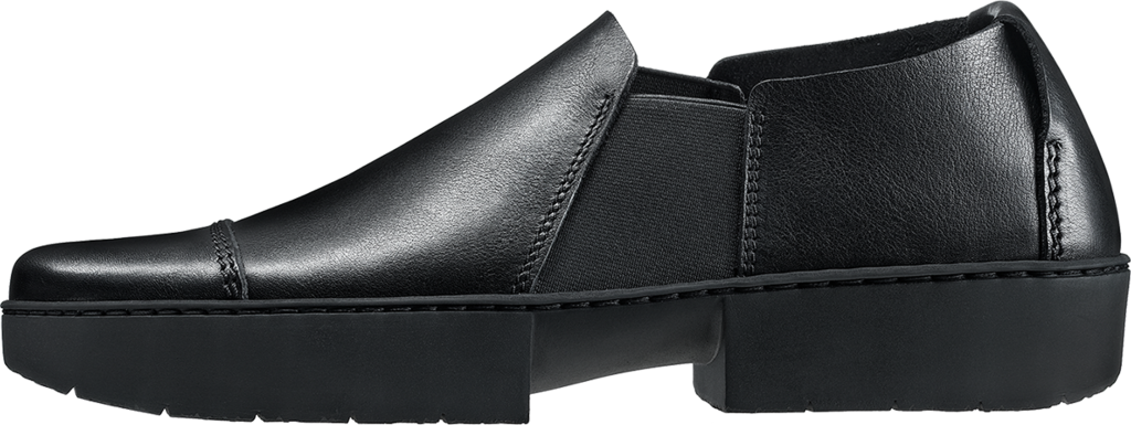 Leger Unisex-Halbschuh mit seitlichem Elastik, dessen Blatt von einer aufgesetzten Kappe optisch aufgelockert wird.