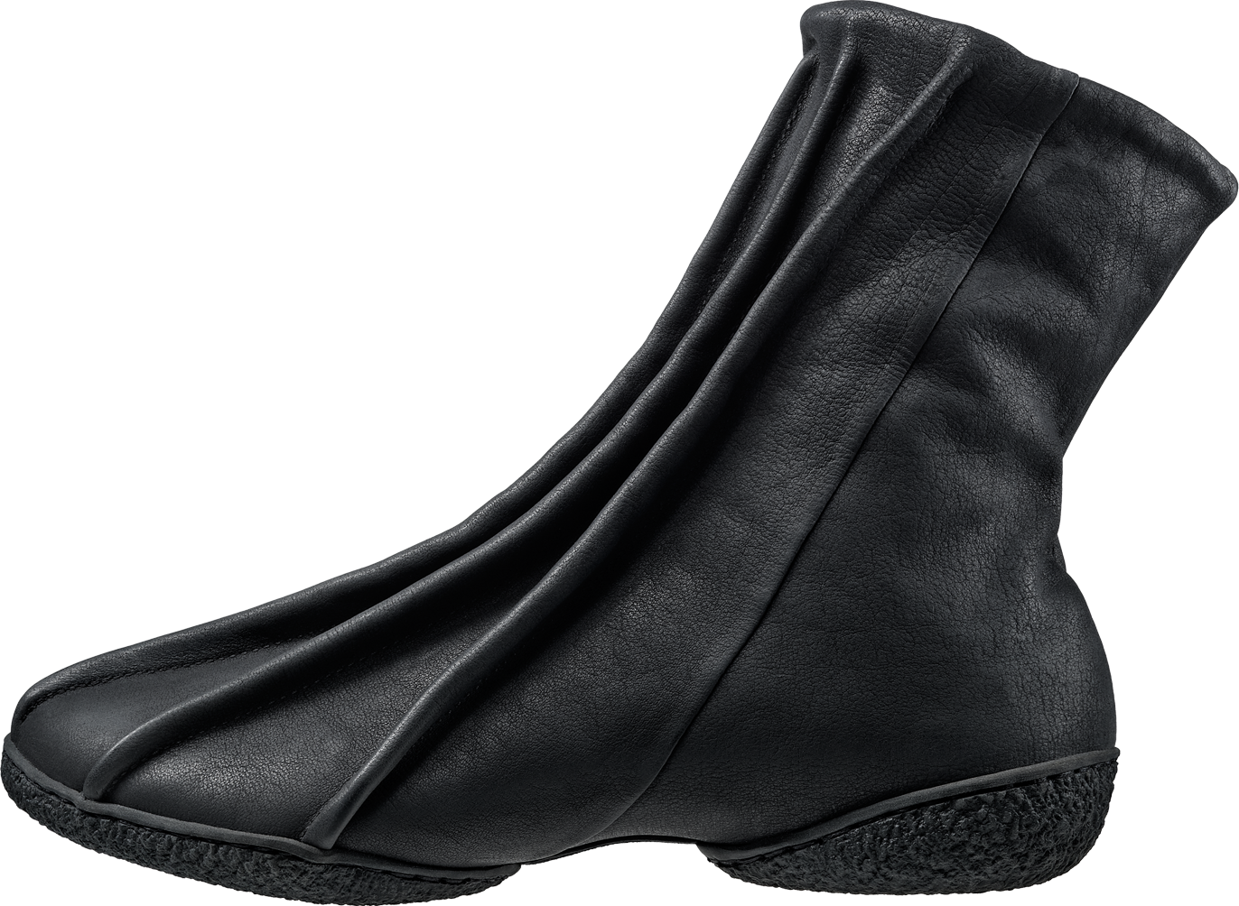 Ankle-high zip fastener ankle boot with new cut construction, where the cording along the instep replaces the full of the vamp.