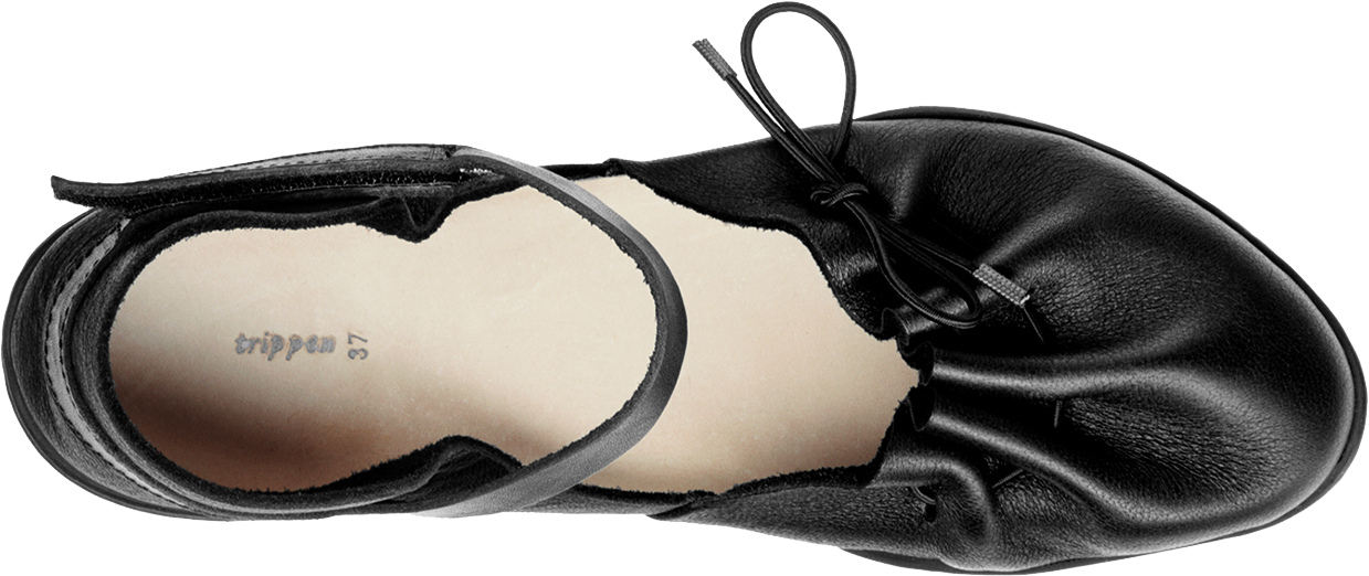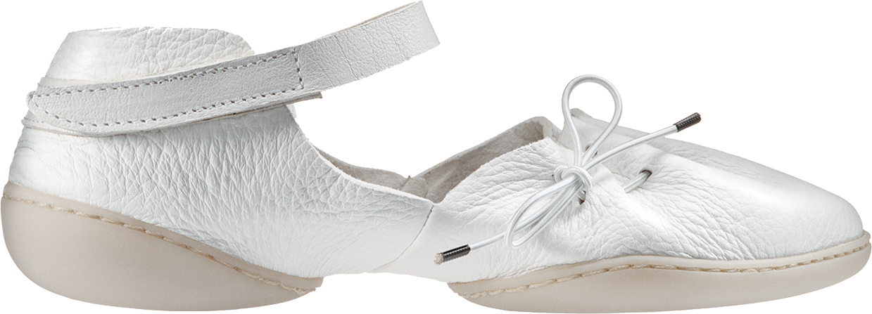 The soft elk gathers in light folds around the forefoot, while at the same time the width of the shoe can be adjusted with the elastic laces. The ankle strap gives additional hold.