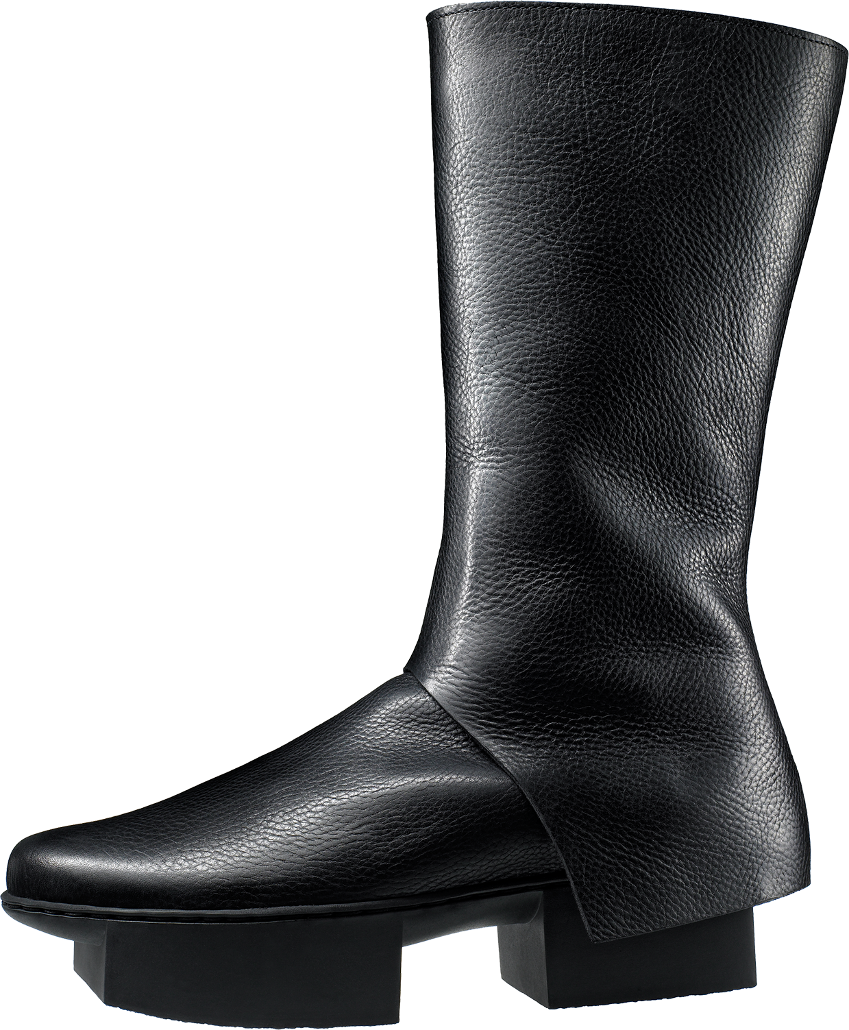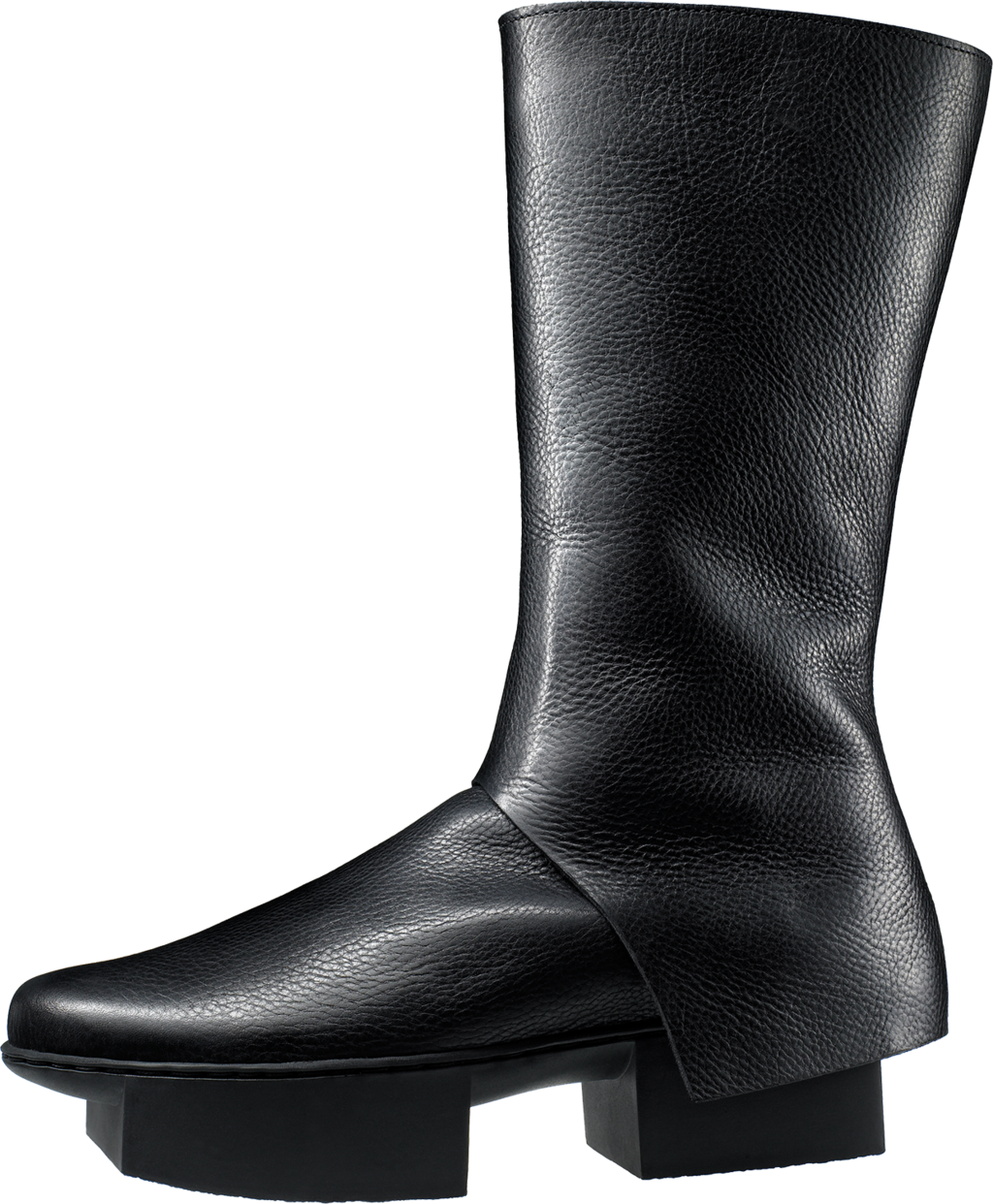 The rear part of the shaft is not pinched at the heel but sits on top of the instep and shifts with every movement. The cut, lengthened in a downwards direction, resembles a cloven hoof – hence the name.