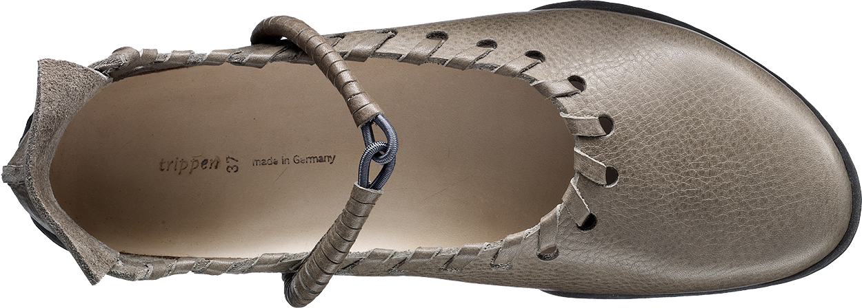 The decorative leather strap wrapped around the edge of this ballerina is inspired by Moroccan Babouches. A strap made from two connected elastic laces guarantees a firm hold.