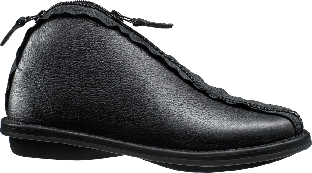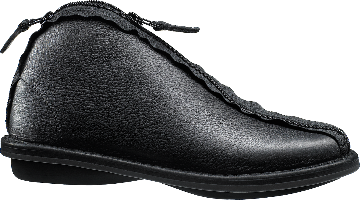 Unusual style that thanks to the zipper can be worn open like a ballerina or further closed.