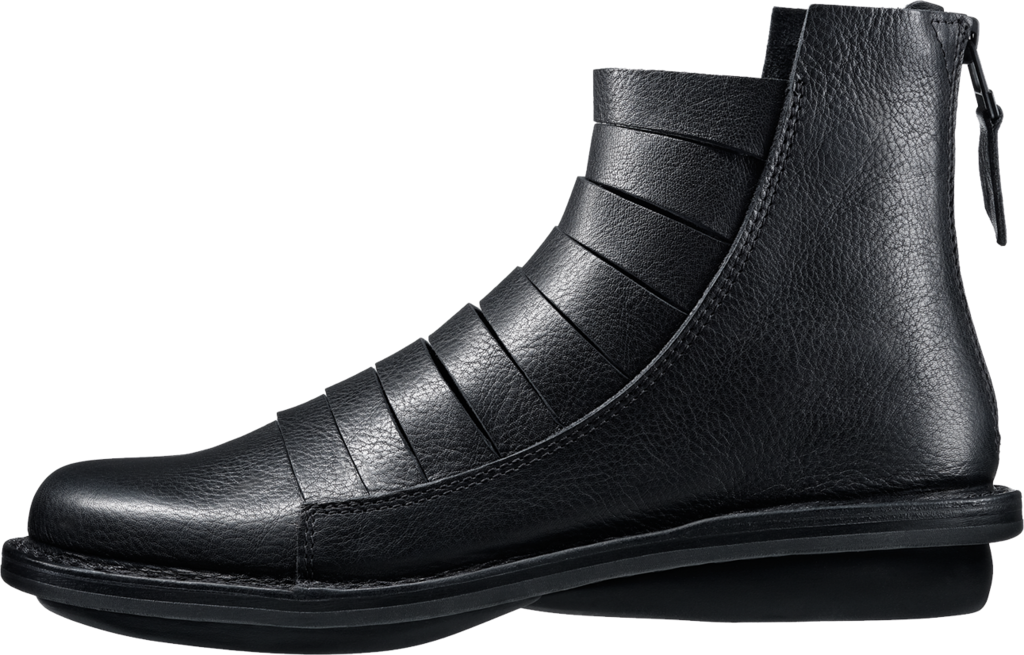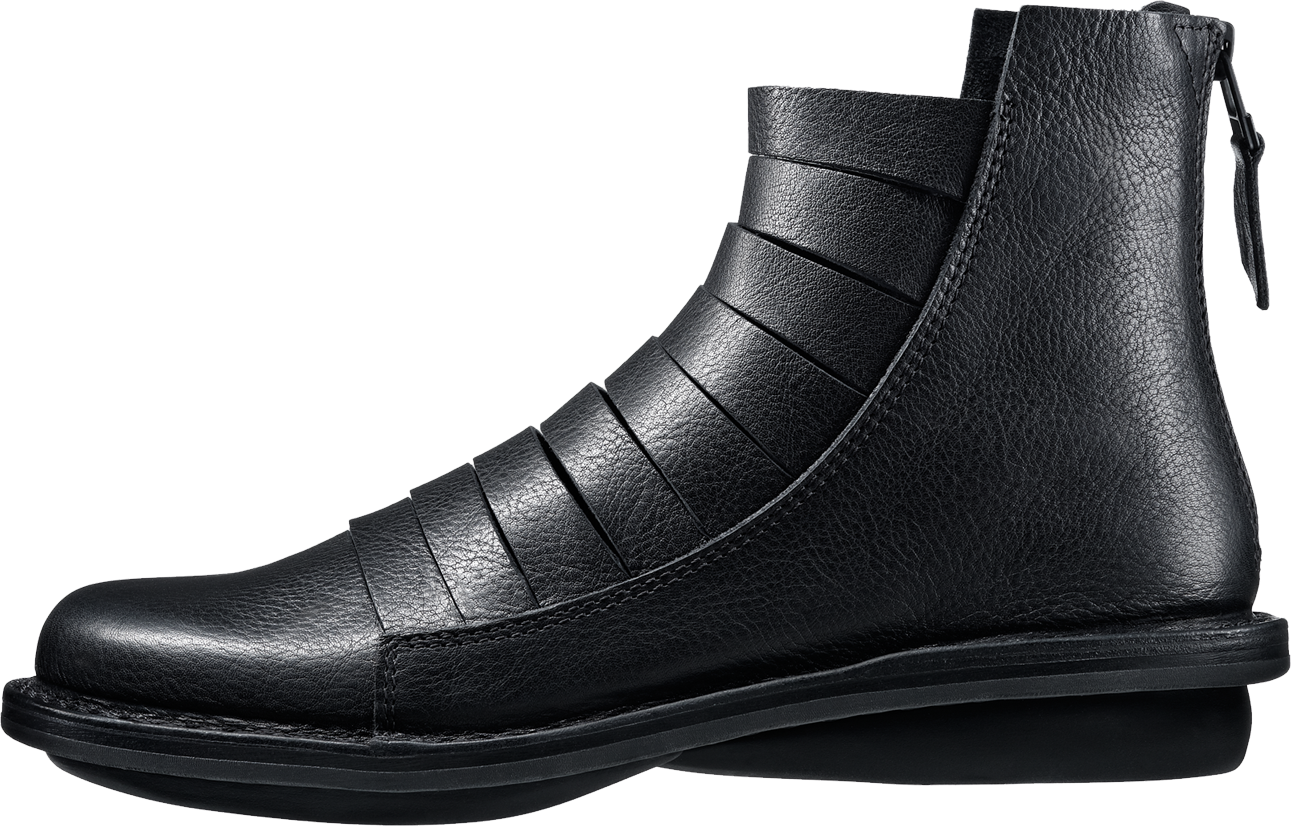 Summery unisex ankle boot with a zip at the heel. The centre section of the shaft is cut in such a way that it follows the line of the instep. It also gives the boot a maritime character. Thi picture shows the style in »black-waw«.