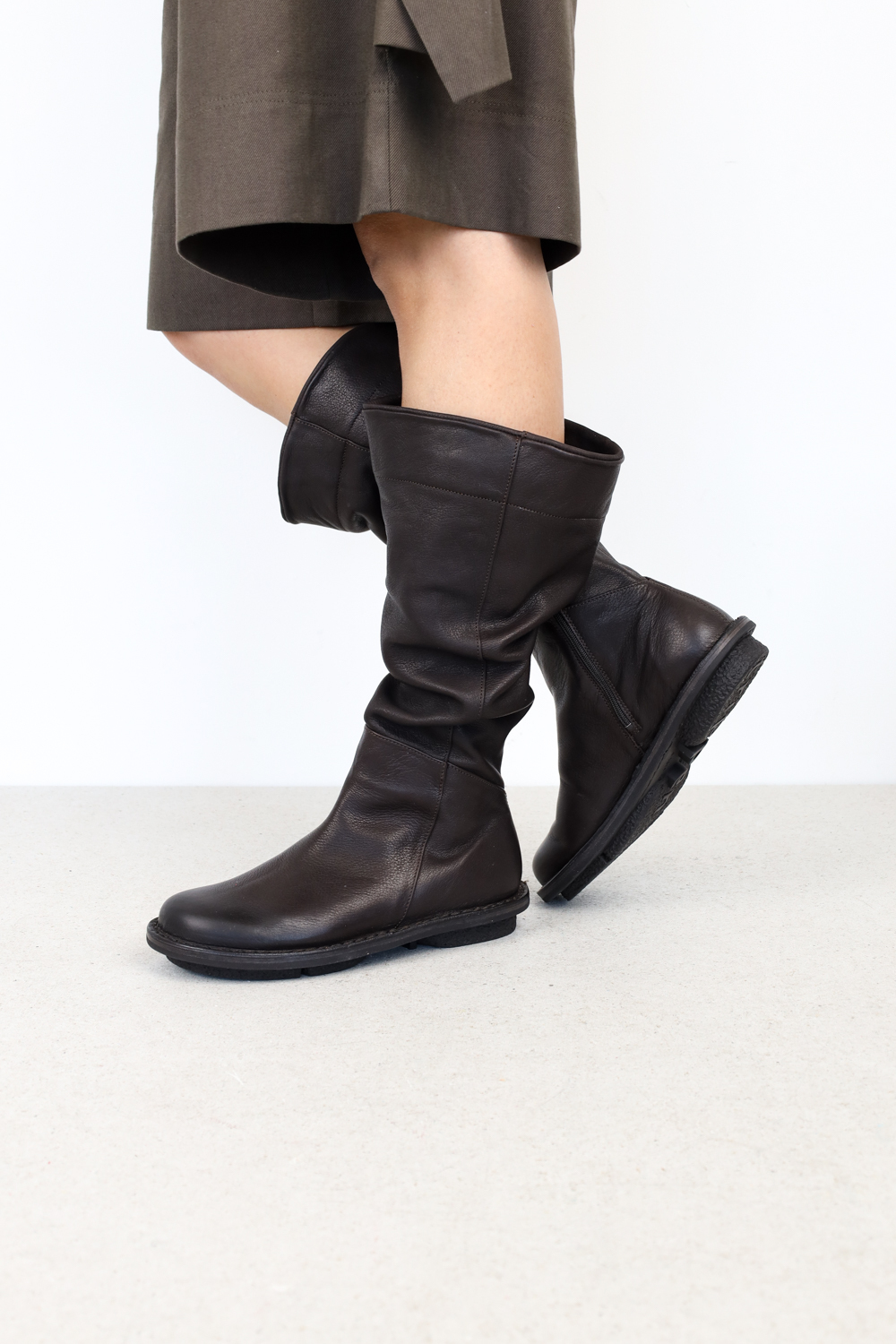 Boot made from super soft leather with inner zip fastener. Wide around the top and tight around the ankle.