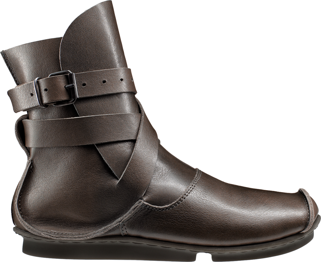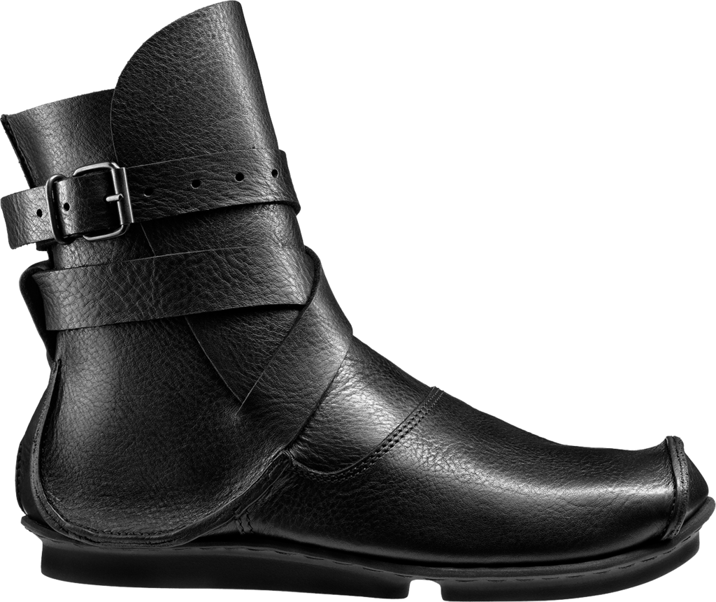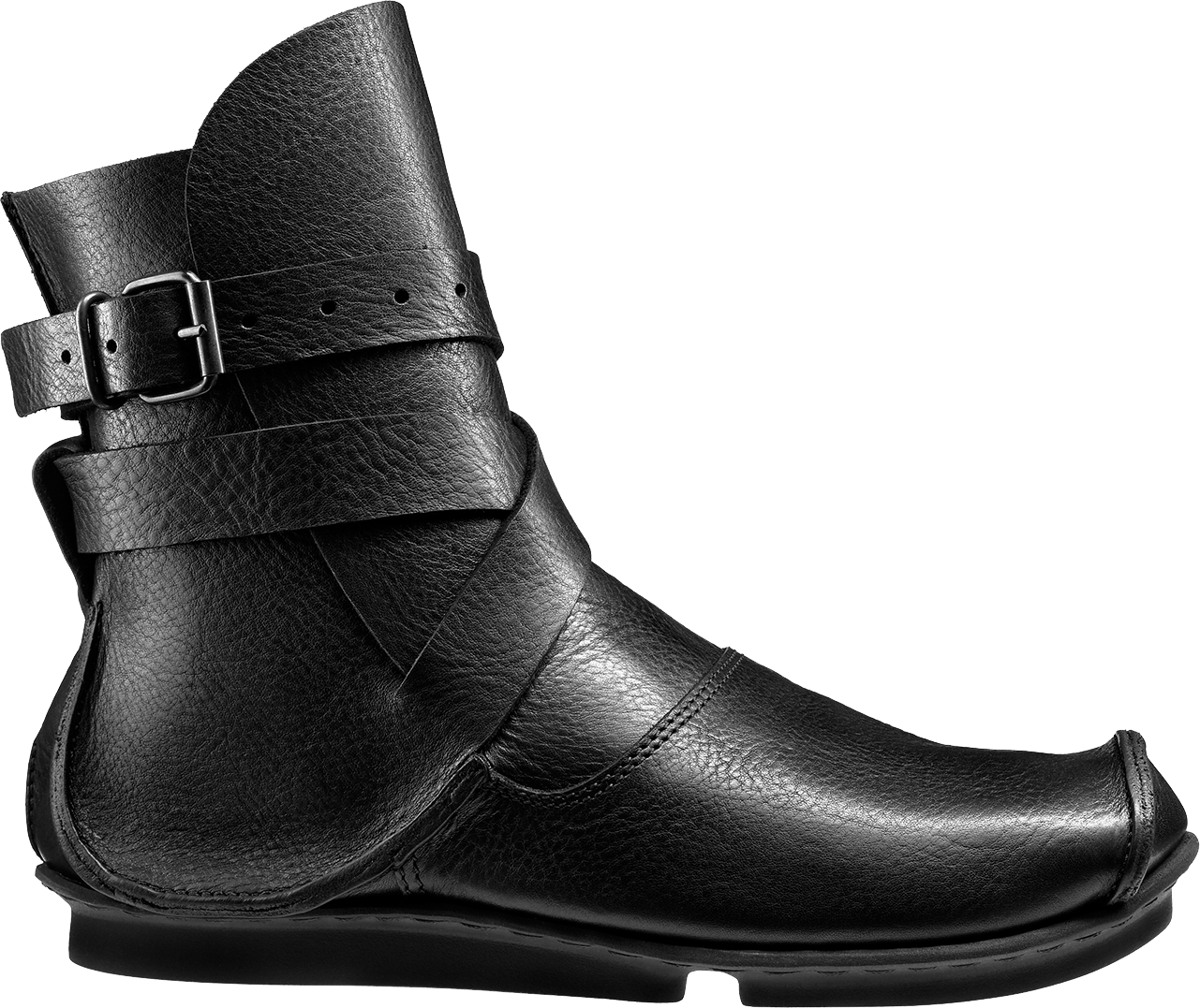 The flap, wrapped round several times with a strap, provides a re-interpretation of medieval protective clothing.