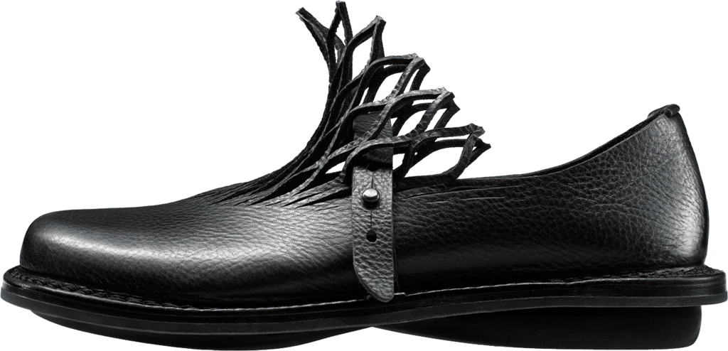 Incisions in the leather create an impressive three-dimensionality here. The upper is cut on the instep so that it can be worn in many different ways. A strap with button fastening guarantees a firm hold.