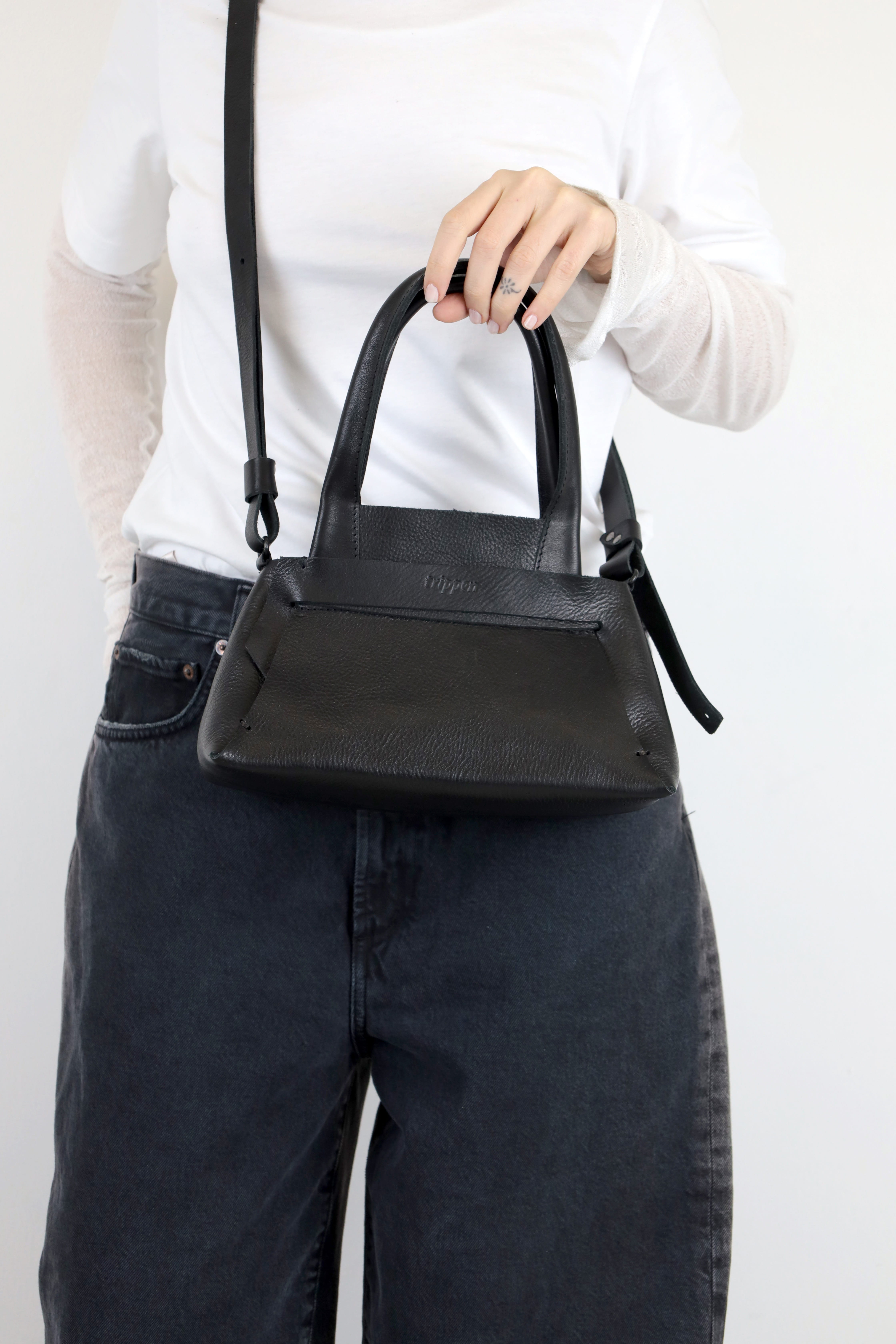 Als Mini-Version der Origami Bag hat diese Handtasche das gleiche geometrische Volumen, das durch Falten eines einzigen Lederstücks nach der Origami-Technik entsteht. Nur wenige Nähte sorgen für Funktionalität und sichern die Griffe. Dank des verstellbaren Riemens kann sie auch als Umhängetasche getragen werden.