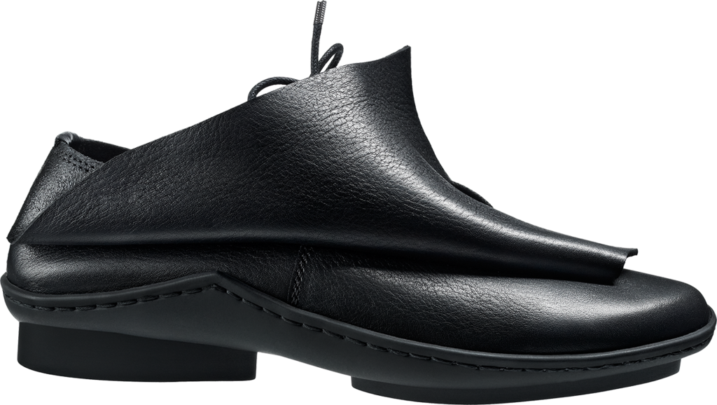 Striking shoe with lacing on the centre of the vamp whose upper sweeps in one flowing section from outside to inside like a wave.