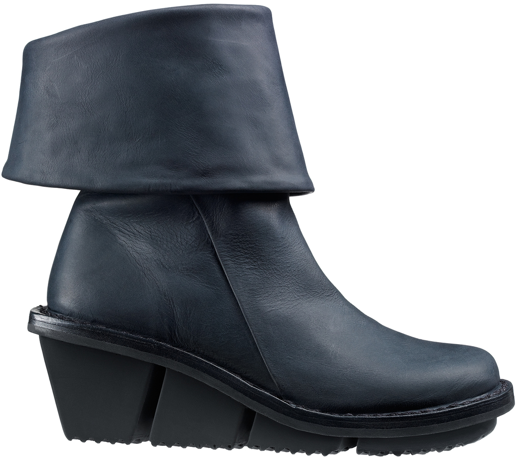Ankle boot of medium height with a zip inside and a leather-lined shaft. The shaft can be folded down to create a wide flap.