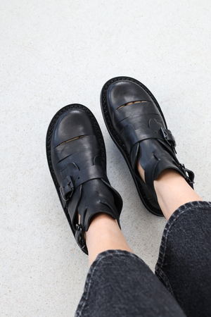 This model runs particularly large, even compared to other models from the Closed collection. So we recommend to order it one size smaller. If necessary, the removable cork footbed can be exchanged against a thinner version for wider feet or orthopedic insoles.