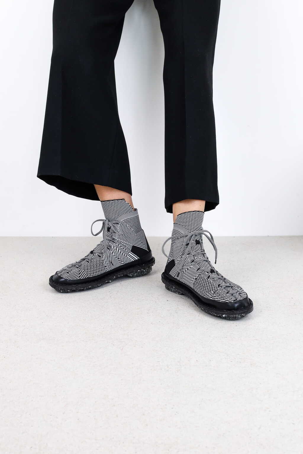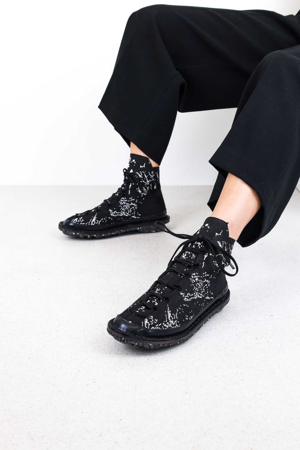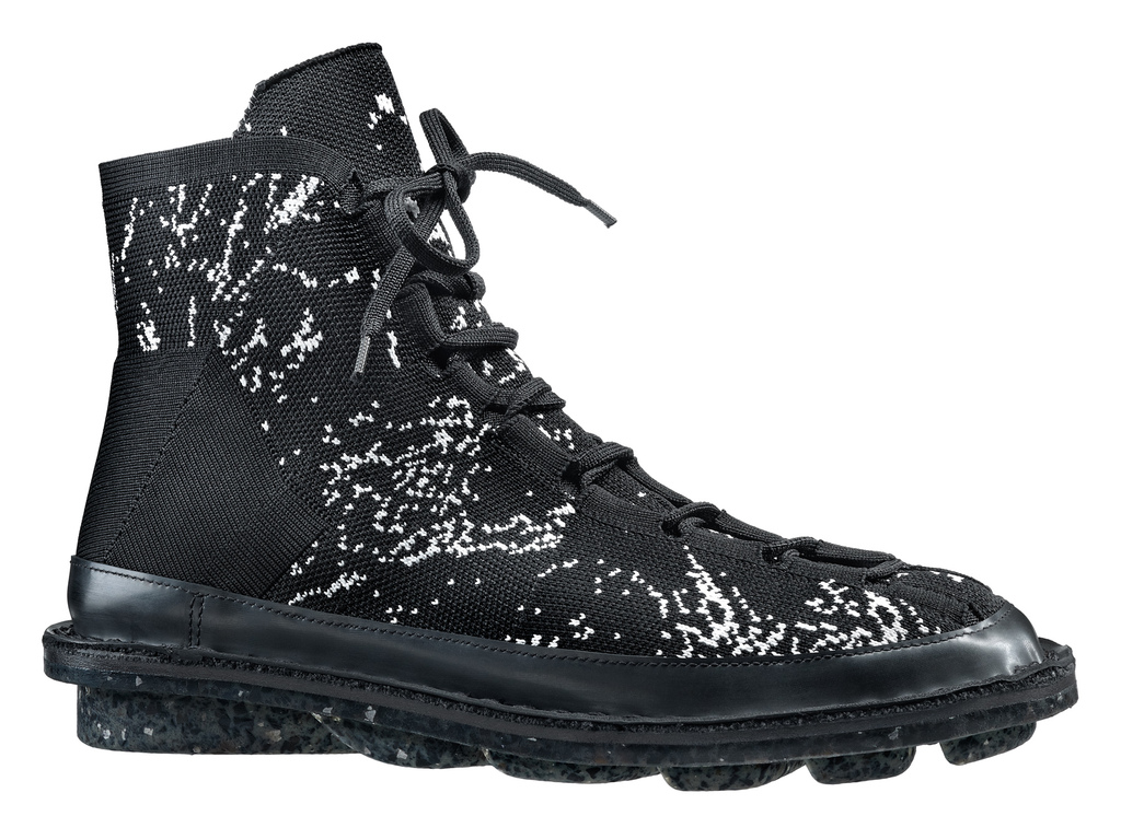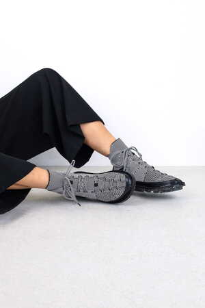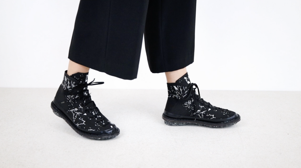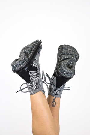 The second model in our new tradition of circular knitting is an ankle-high lace-up sneaker.