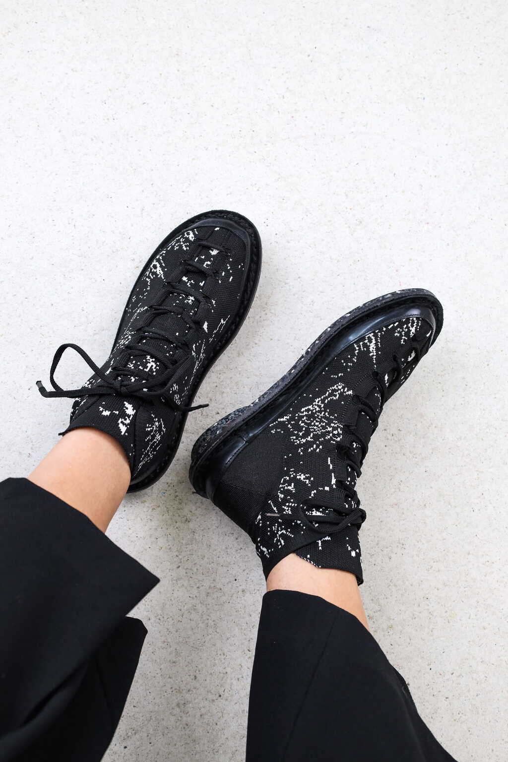 The second model in our new tradition of circular knitting is an ankle-high lace-up sneaker.