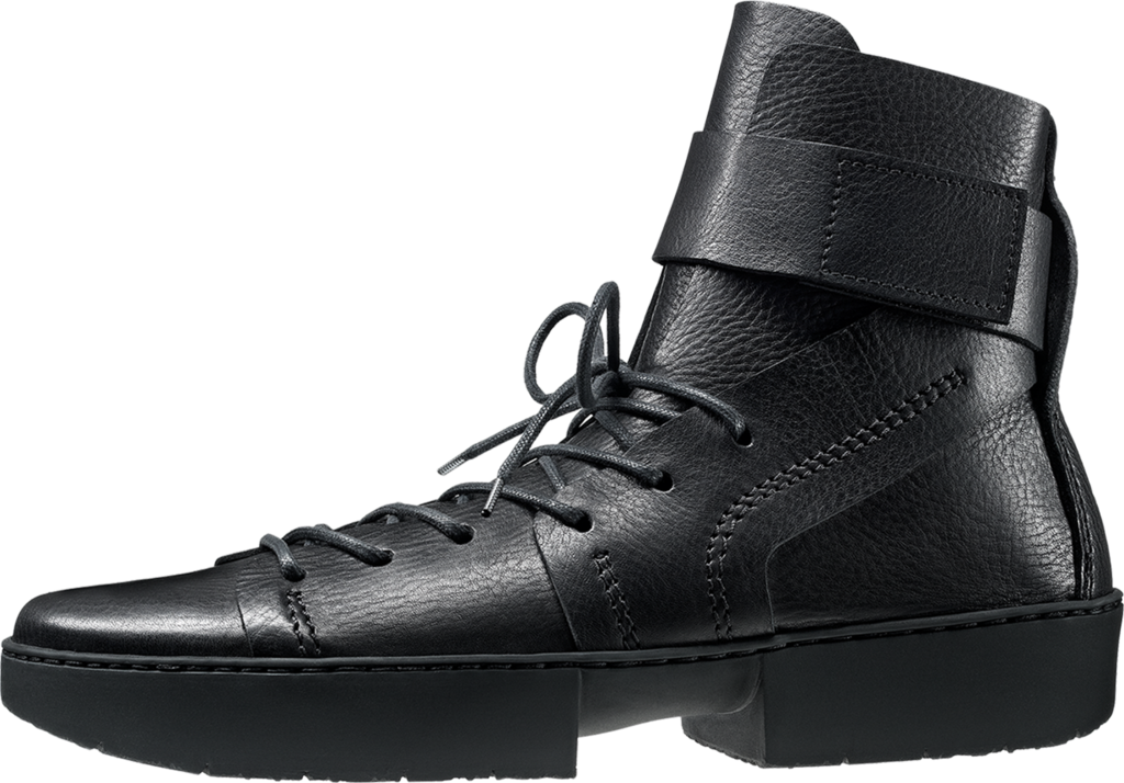 Unisex lace-up ankle boot with linear side appliqués, decorative stitching and an ankle strap with Velcro fastening – inspired by classic sports shoes.