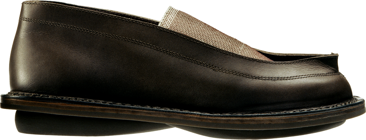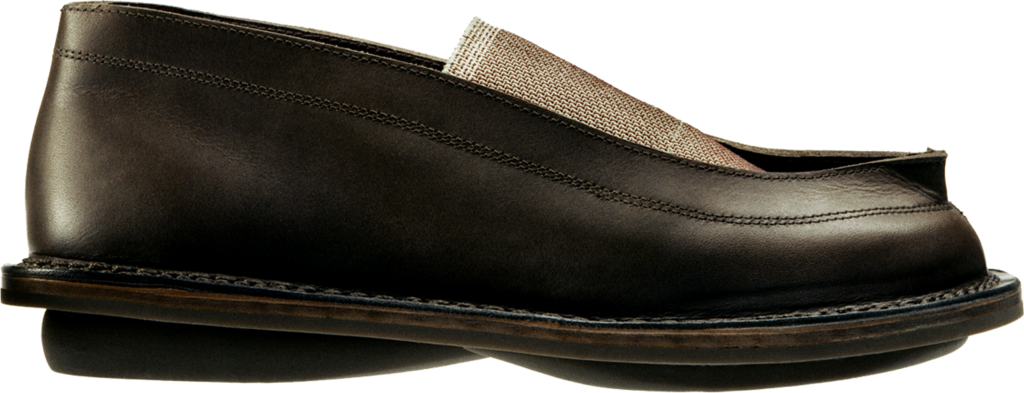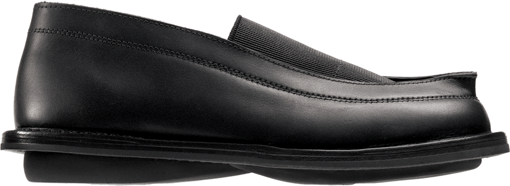 The flowing lines of this style bring to mind the shape of a ship. The wide elastic on the instep makes it easy to slip it on.