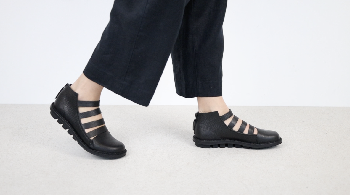 Summery Unisex bootie with a zip at the heel and four wide straps over the instep.