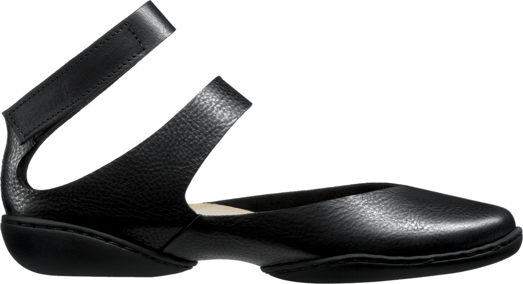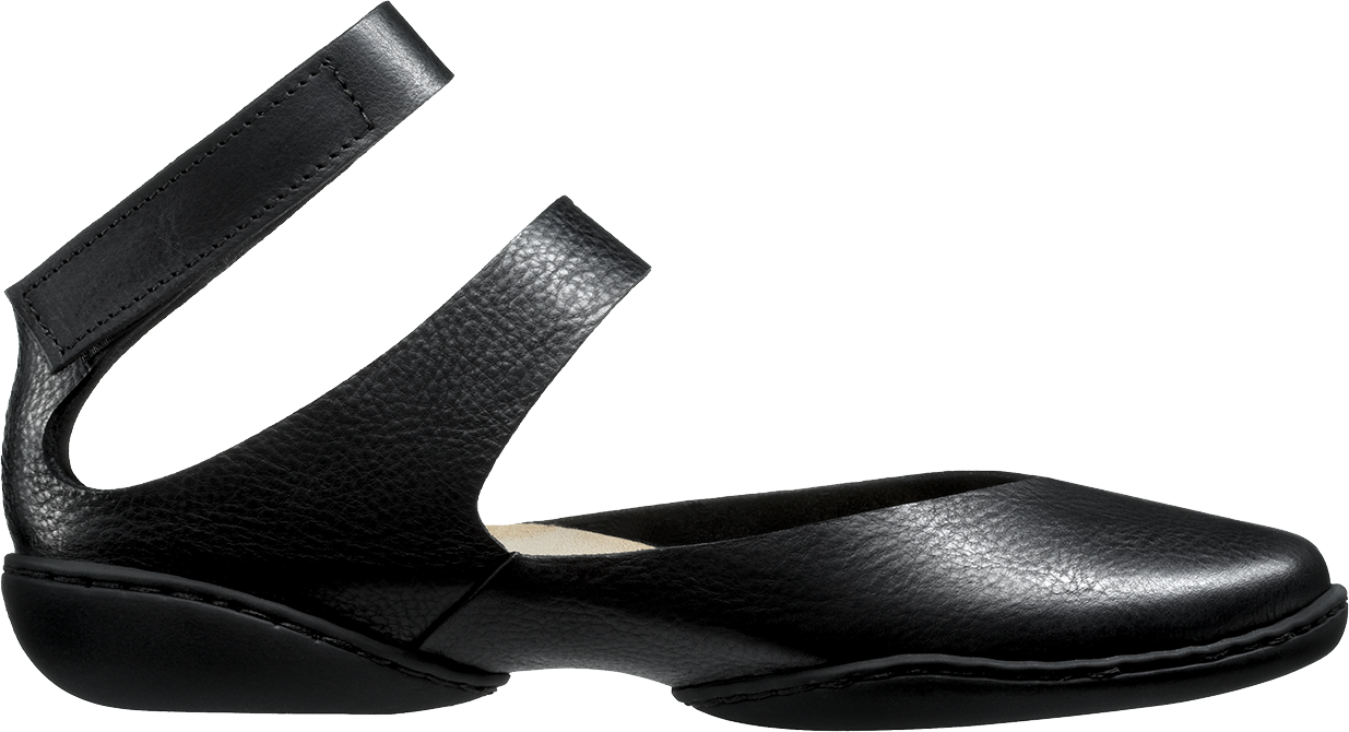 Low cut ballerina. While the front strap sits loose on the instep, the second strap has a Velcro fastening.