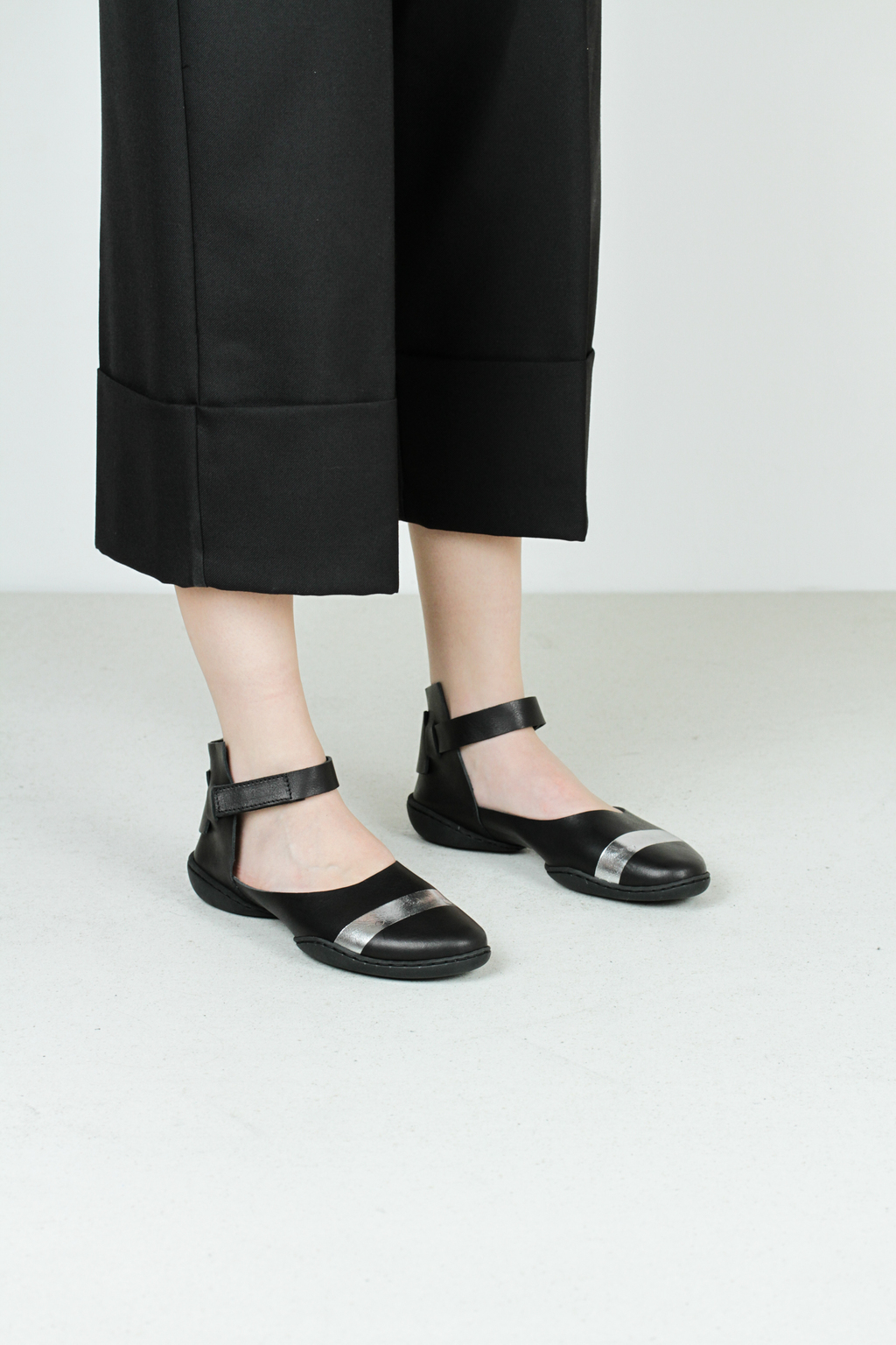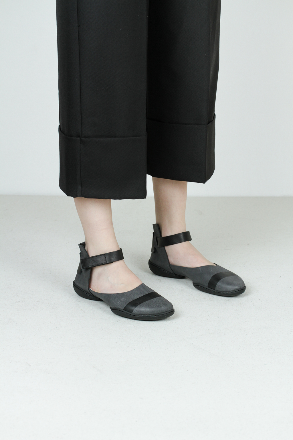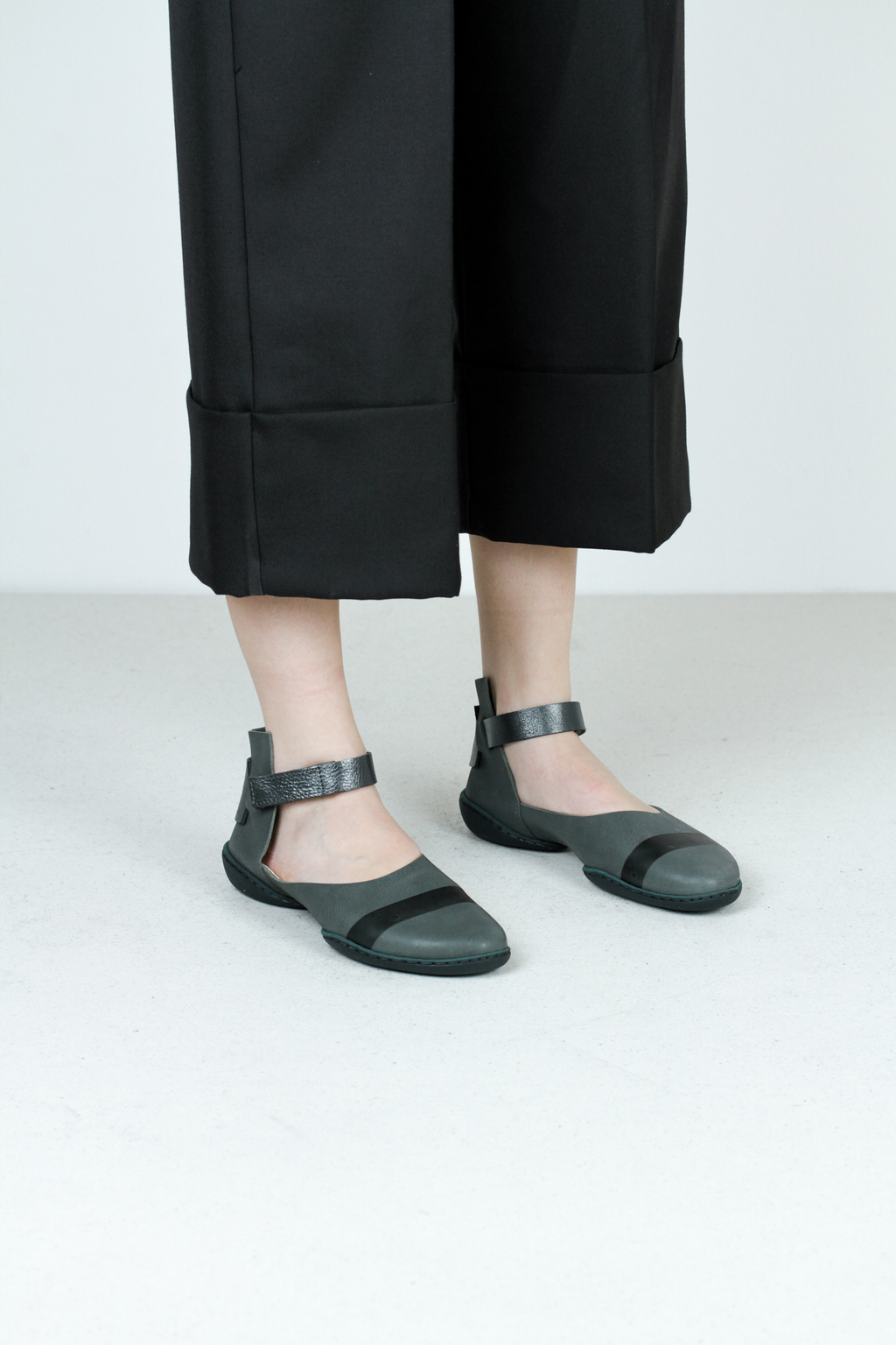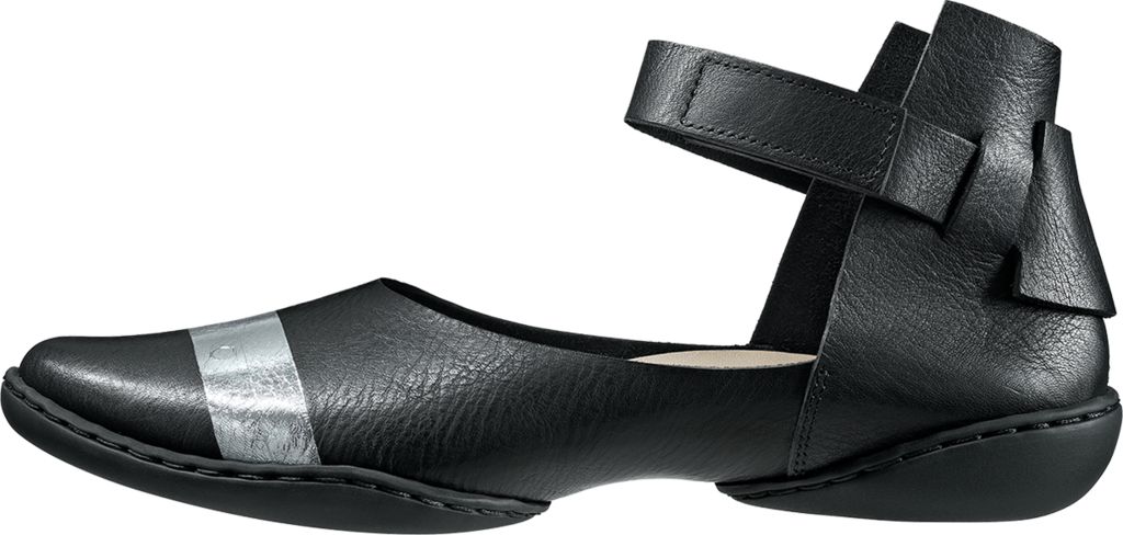 Ballerina cut high on the heel and open over the instep, featuring an ankle strap with Velcro fastening and an upper embossed either with foil or heat only. In »lht« the ankle strap is made from matching »waw« leather. This picture shows the style with »Eques« sole. For information on further colour options, please contact our customer service.