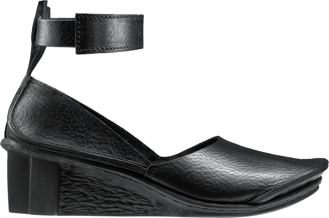 Court shoe with trapeze-shaped ankle strap and Velcro fastening.