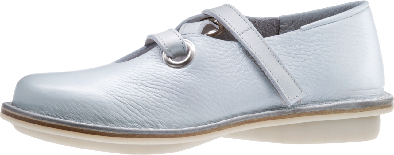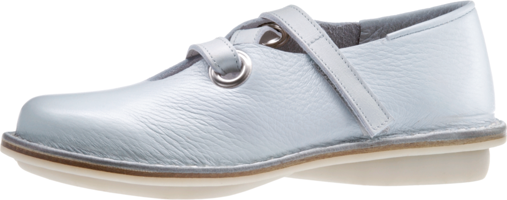 Casual style with asymmetric cut. The re-inforced leather strap is threaded through a large tent eyelet and then secured with a Velcro fastening.