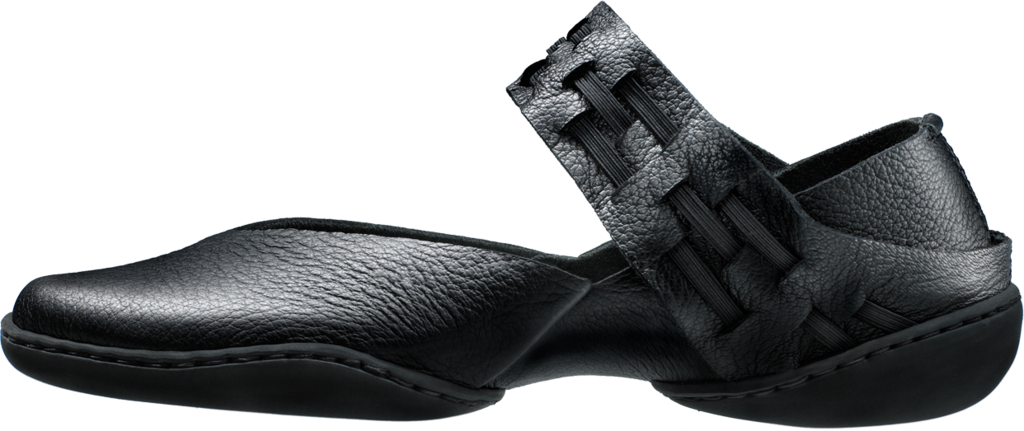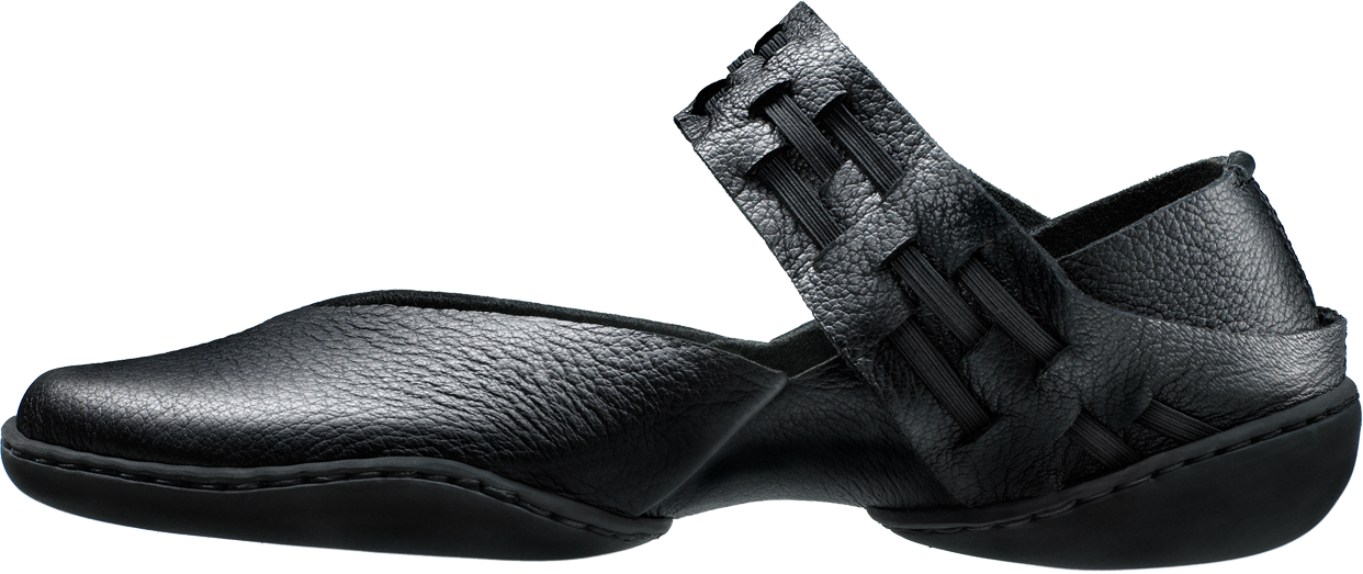 The interwoven elastic bands contract the strap across the instep to soft pleats and guarantee an excellent fit.