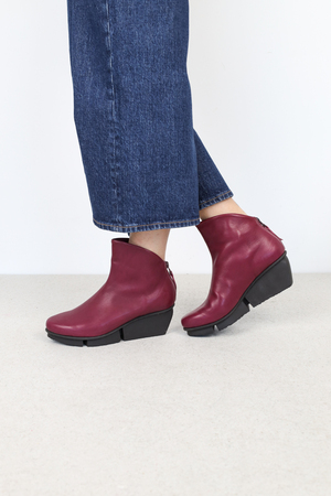 Minimalist ankle boot reduced to the essentials, made of just one upper part, completely without seams and with a short zip at the heel.