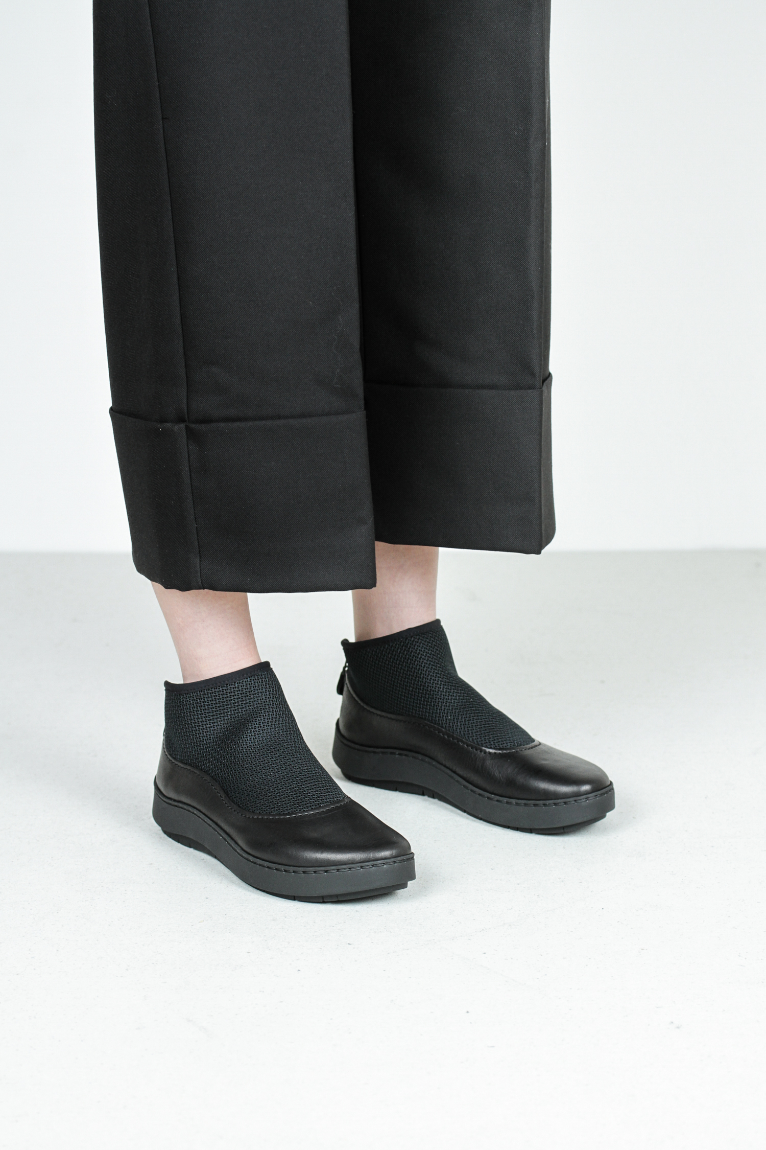 Casual bootie with zip at the heel and a textile-mesh insert over the instep.