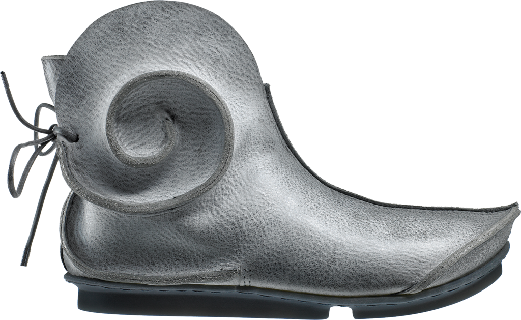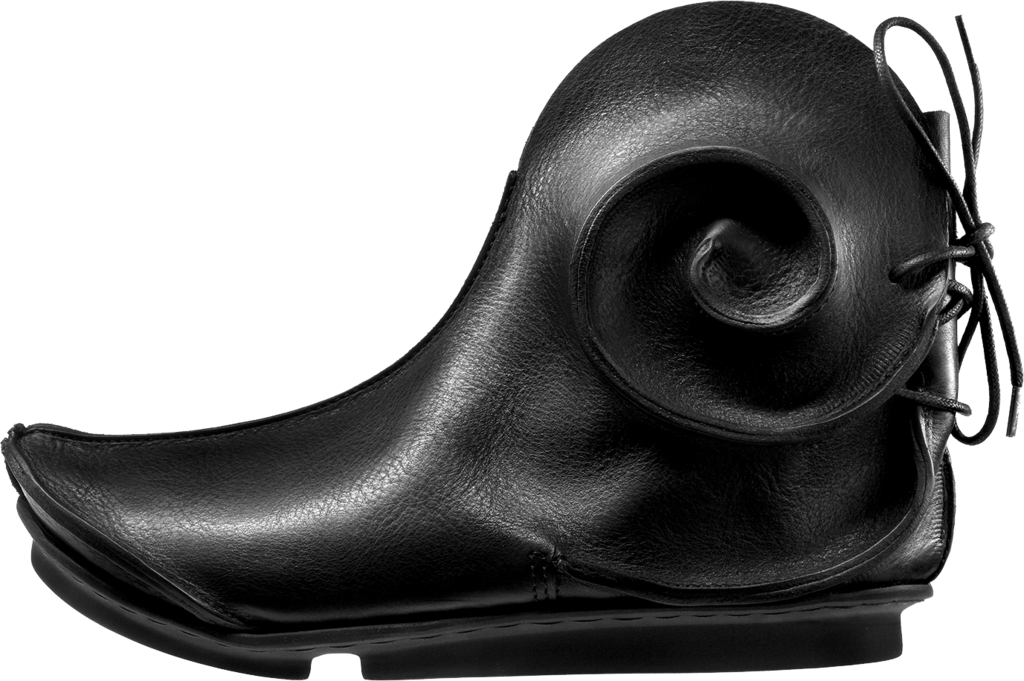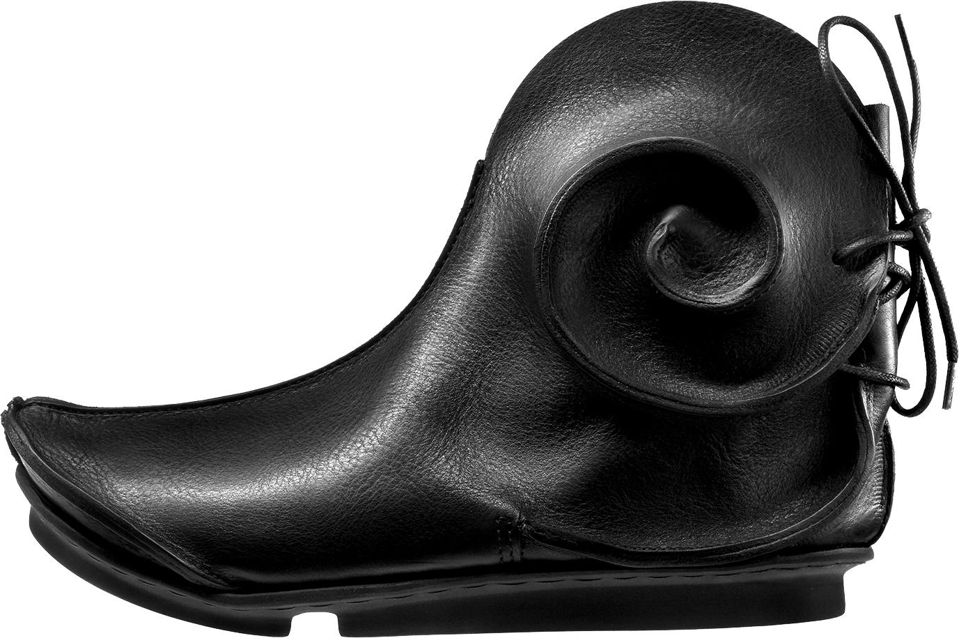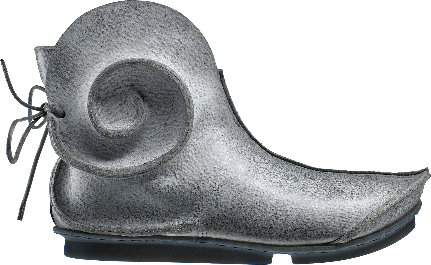 With their curved shape, the decorative raw seams recall the horns of a bull.