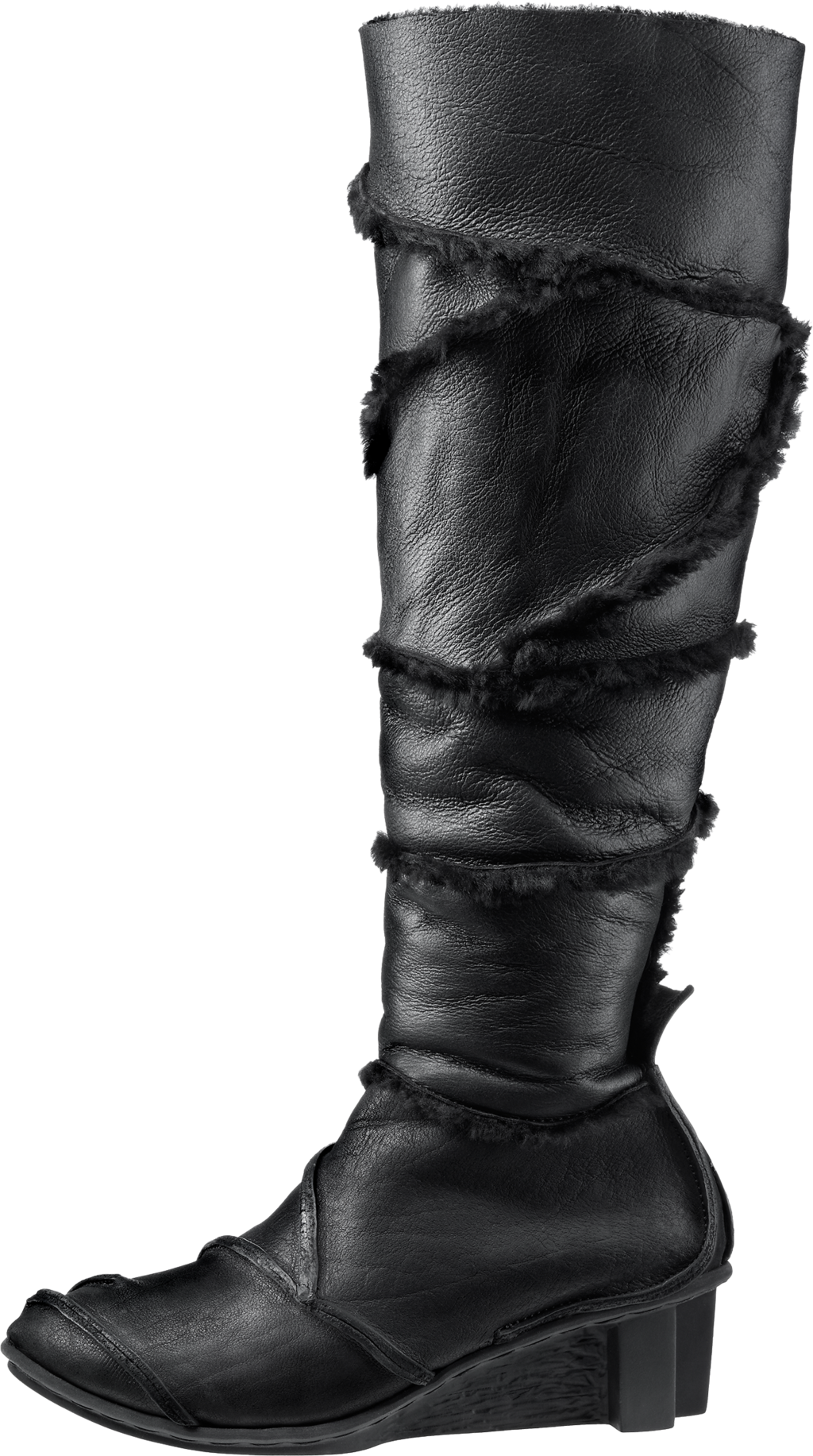 Modified version of »Rocket«, lined with fur. The inner zip fastener ends at mid-calf, thus allowing the upper part of the shaft to be turned inside out.