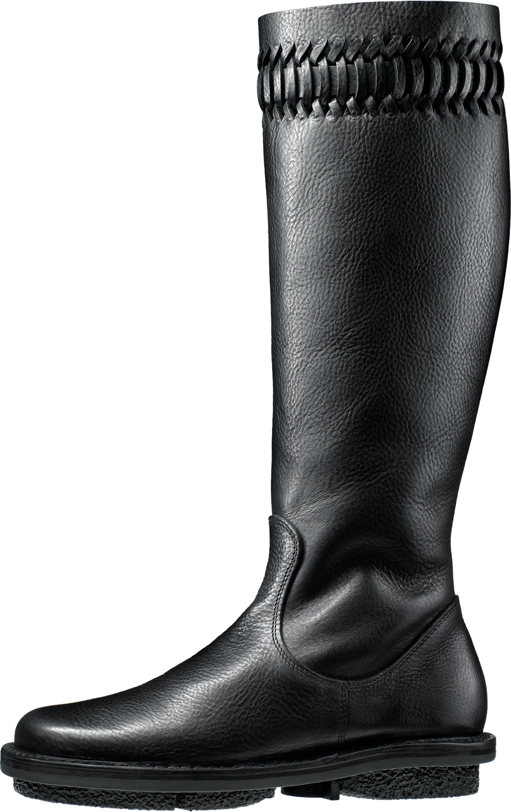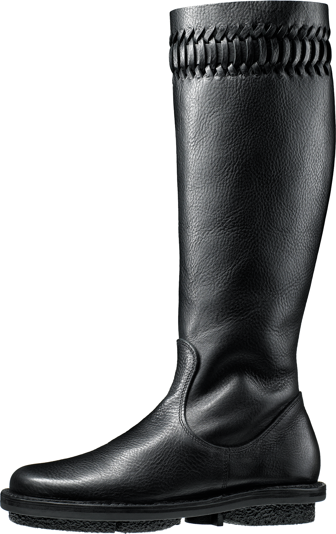 Knee-high boot with inner zip fastener. The artistically braided leather band at the top refers to a renaissance of traditional handicrafts.