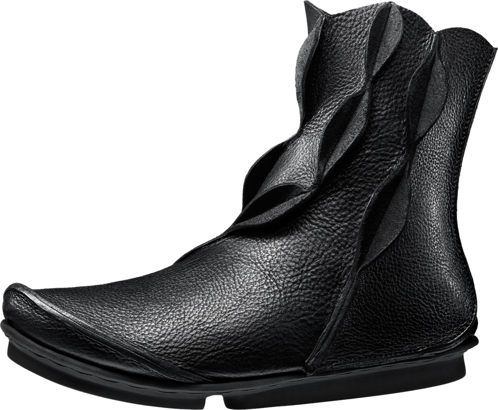 Like pearls on a string, the extensions on the upper of this ankle boot with inner zip fastener join along the curved seams.