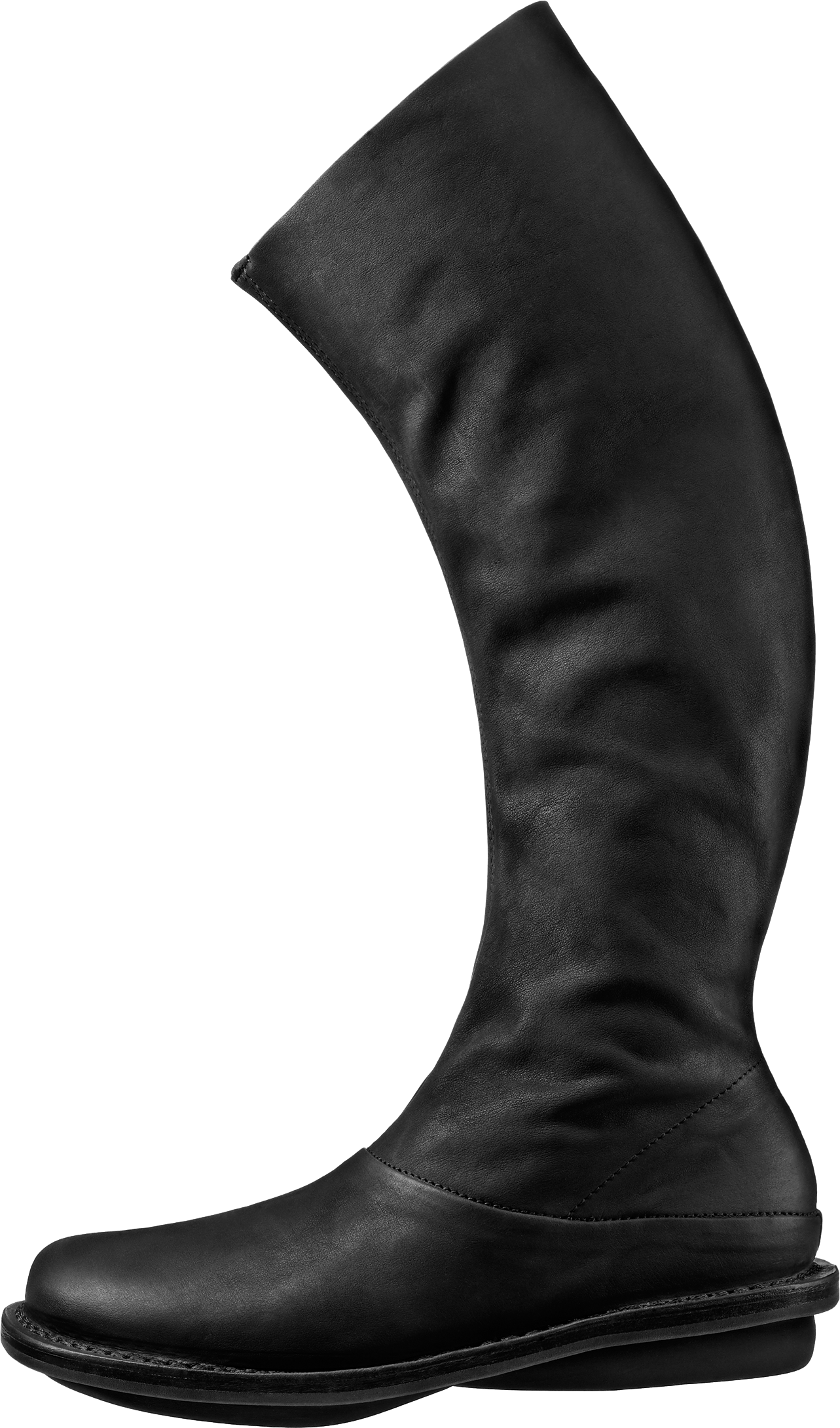 Experimental pattern solutions that create an unusual plasticity are a Trippen characteristic. With this knee-high boot with inner zip fastener, the soft, curved shaft follows the anatomically given line and falls in soft creases along the calf.