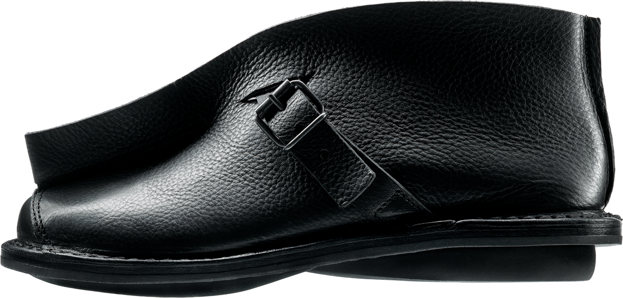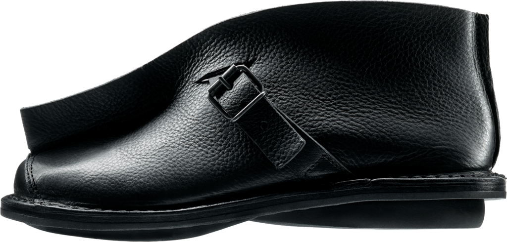 A rectangle forms the basis for the entire upper of this unisex style. A strap across the instep guarantees firm hold despite the experimental pattern.