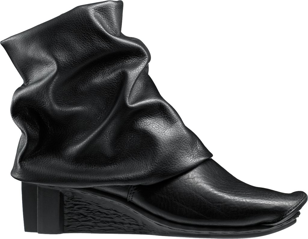Luxurious ankle boot with inner zip fastening whose voluminously doubled shaft forms a beautiful fall of folds.