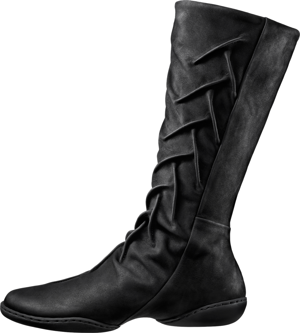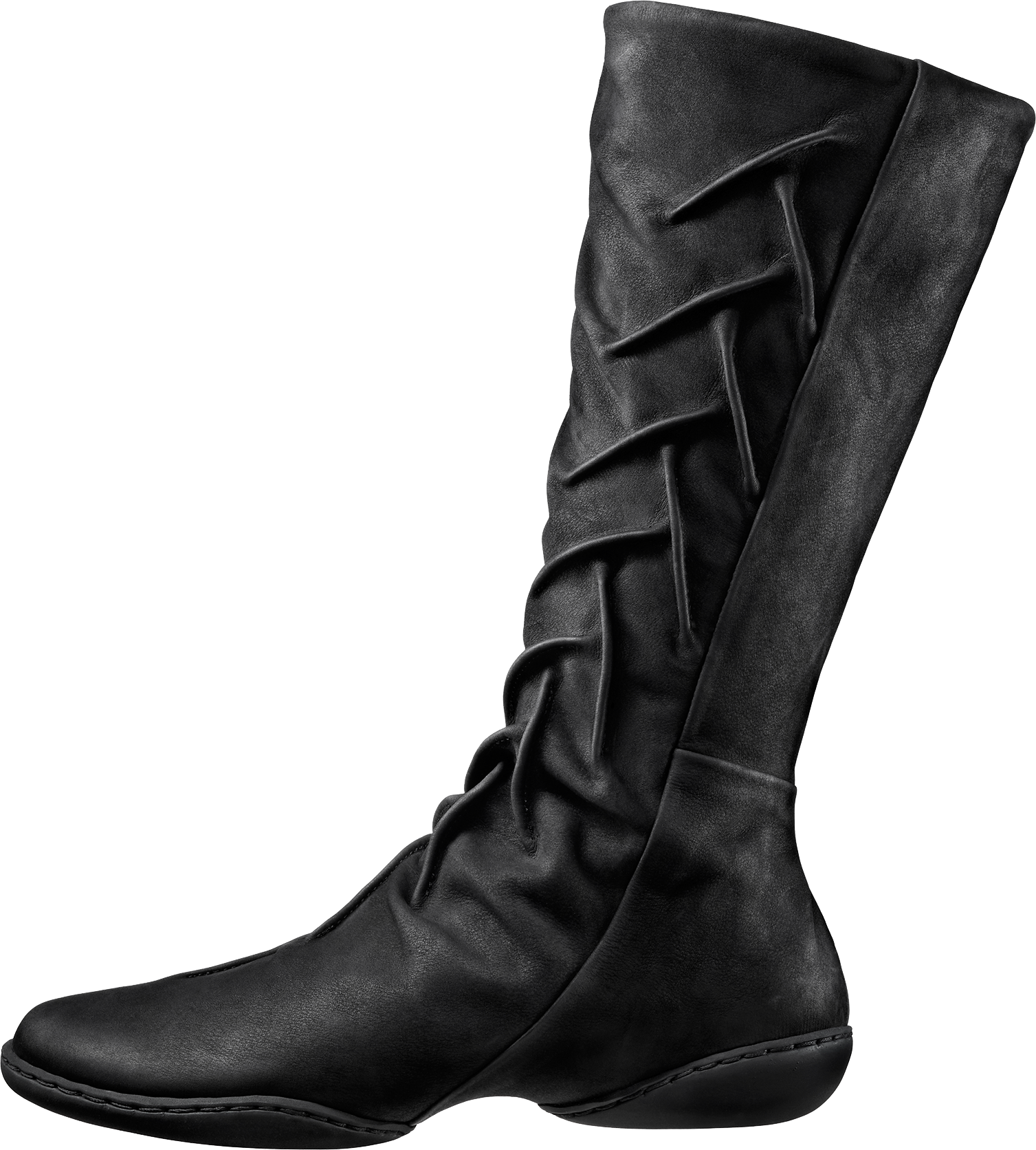 Boot version of »Wicked«. The herring bone piping delightfully enhances the drape caused when the rear-facing shaft falls into soft creases on the instep.